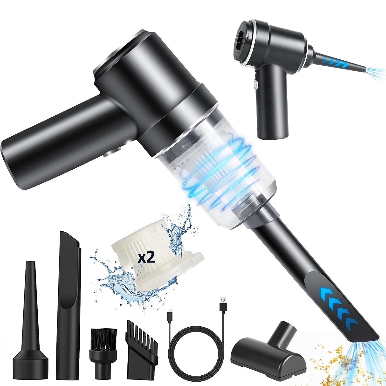 - 。◕‿◕。【Auto Staubsauger Kabellos mit 2 Filter】: Dieser mini staubsauger ist mit wiederverwendbaren HEPA Filter und Staubsammlungst Cup ausgestattet, der ein Doppelschnalle Design verwendet, um Verlust zu vermeiden. Waschbare Filter machen einen Filterwechsel überflüssig. Kompakt genug zum Verstauen, eine einfache Einhandbedienung, mit der Sie fast überall schnell reinigen können, beispielsweise in Ihrem Auto, zu Hause oder im Büro