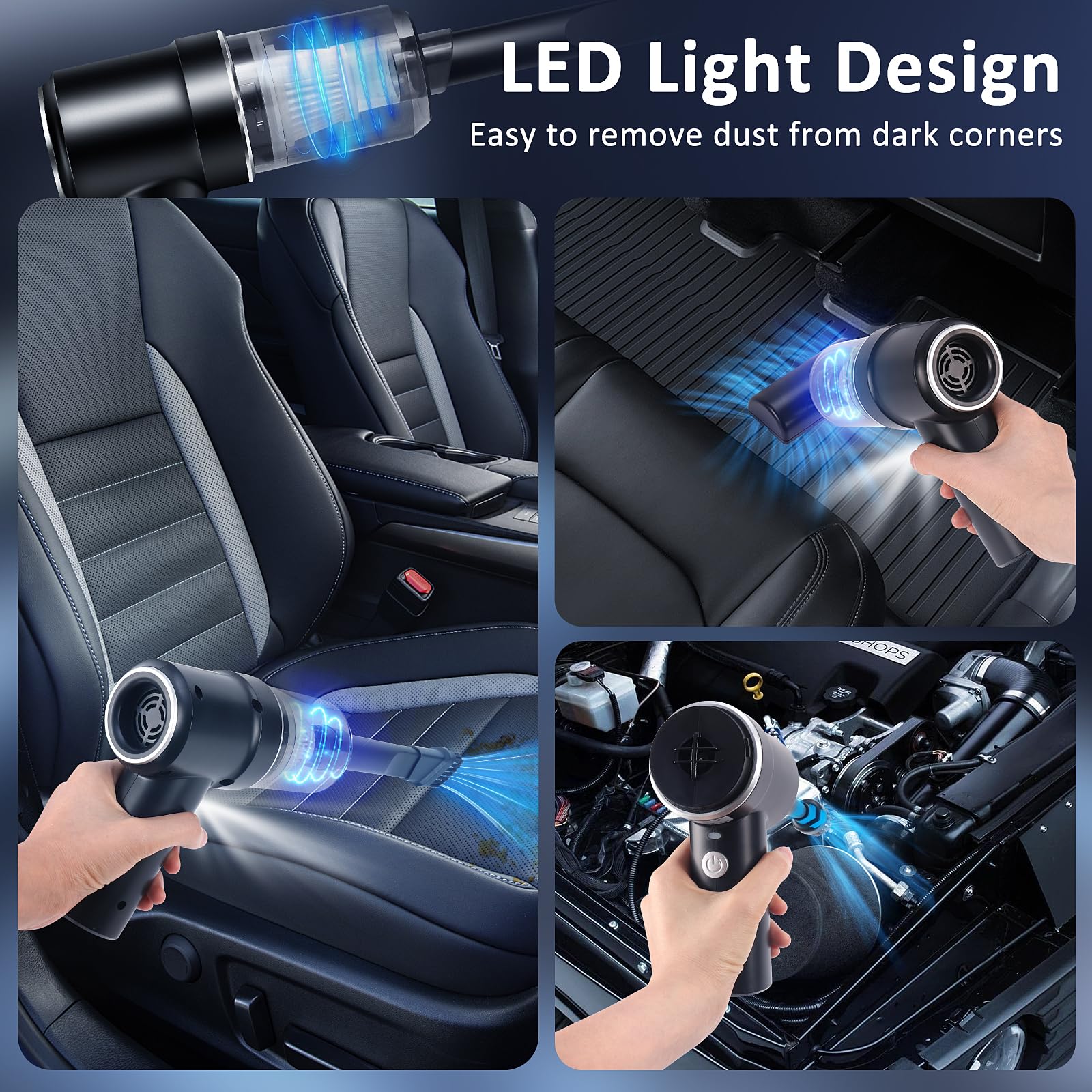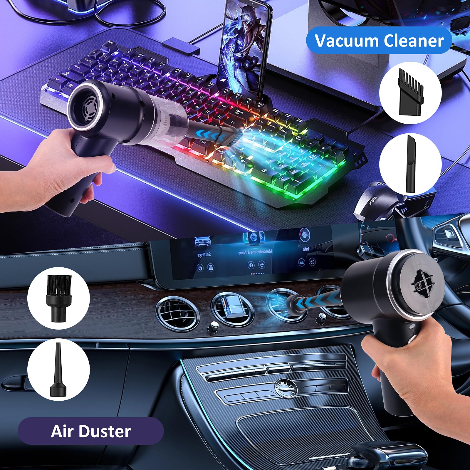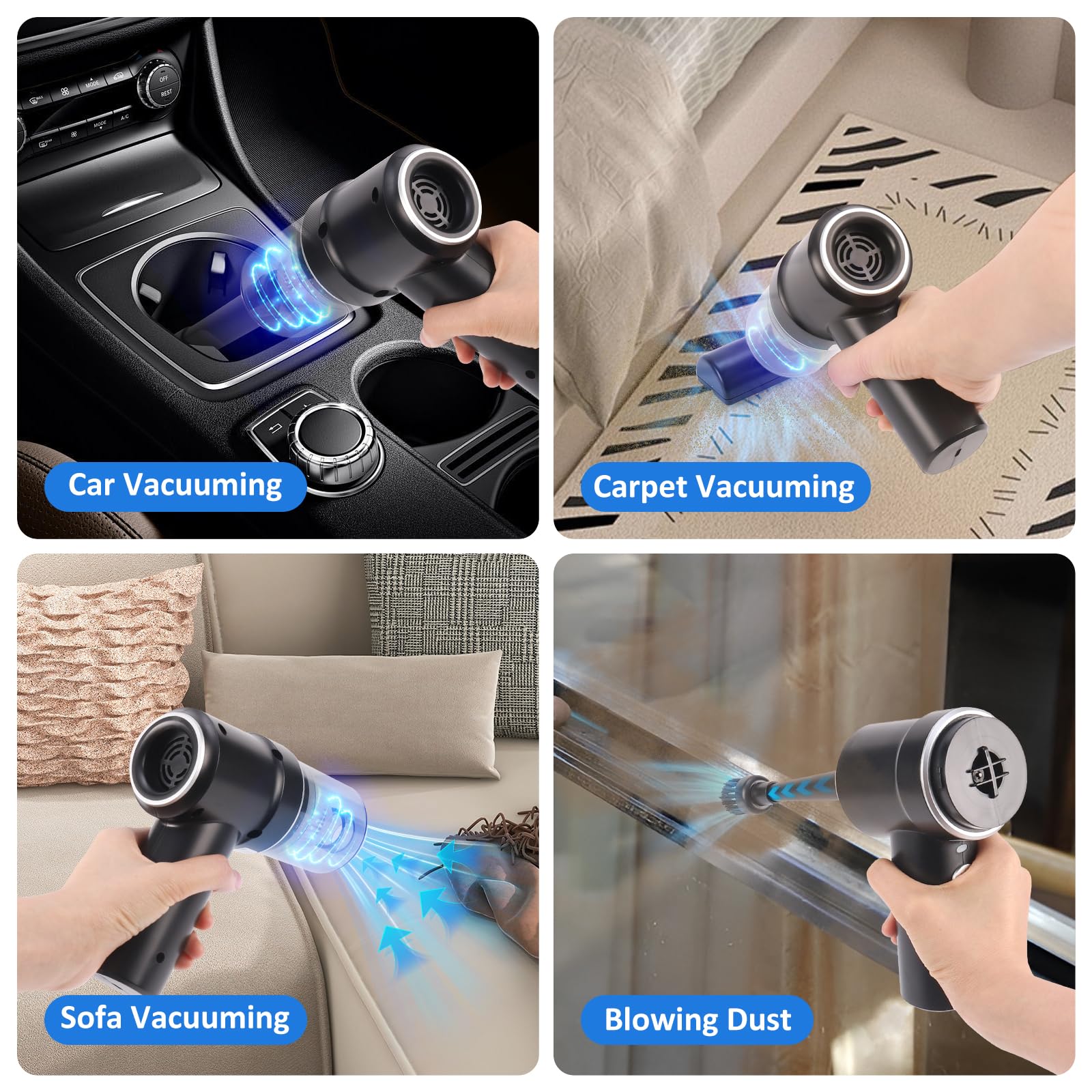 - 。◕‿◕。【2 in 1 Autostaubsauger Akku】: Euakee handstaubsauger kabellos ist nicht nur ein Staubsauger, sondern auch ein Staubbuster. Das tragbarer staubsauger verfügt über ein intelligentes Design, das vordere Ende kann vakuumieren, während das hintere Ende Staub blasen kann, wodurch Sie ein effizientes Reinigungserlebnis erhalten. Dieser auto staubsauger wird mit mehreren Zubehörteilen geliefert, die einzeln oder zusammen zur Verbesserung der Reinigung verwendet werden können