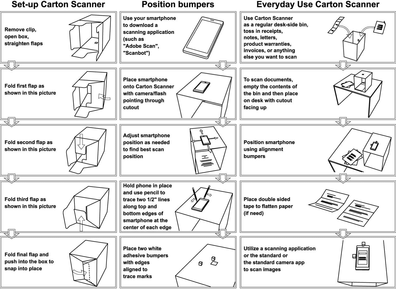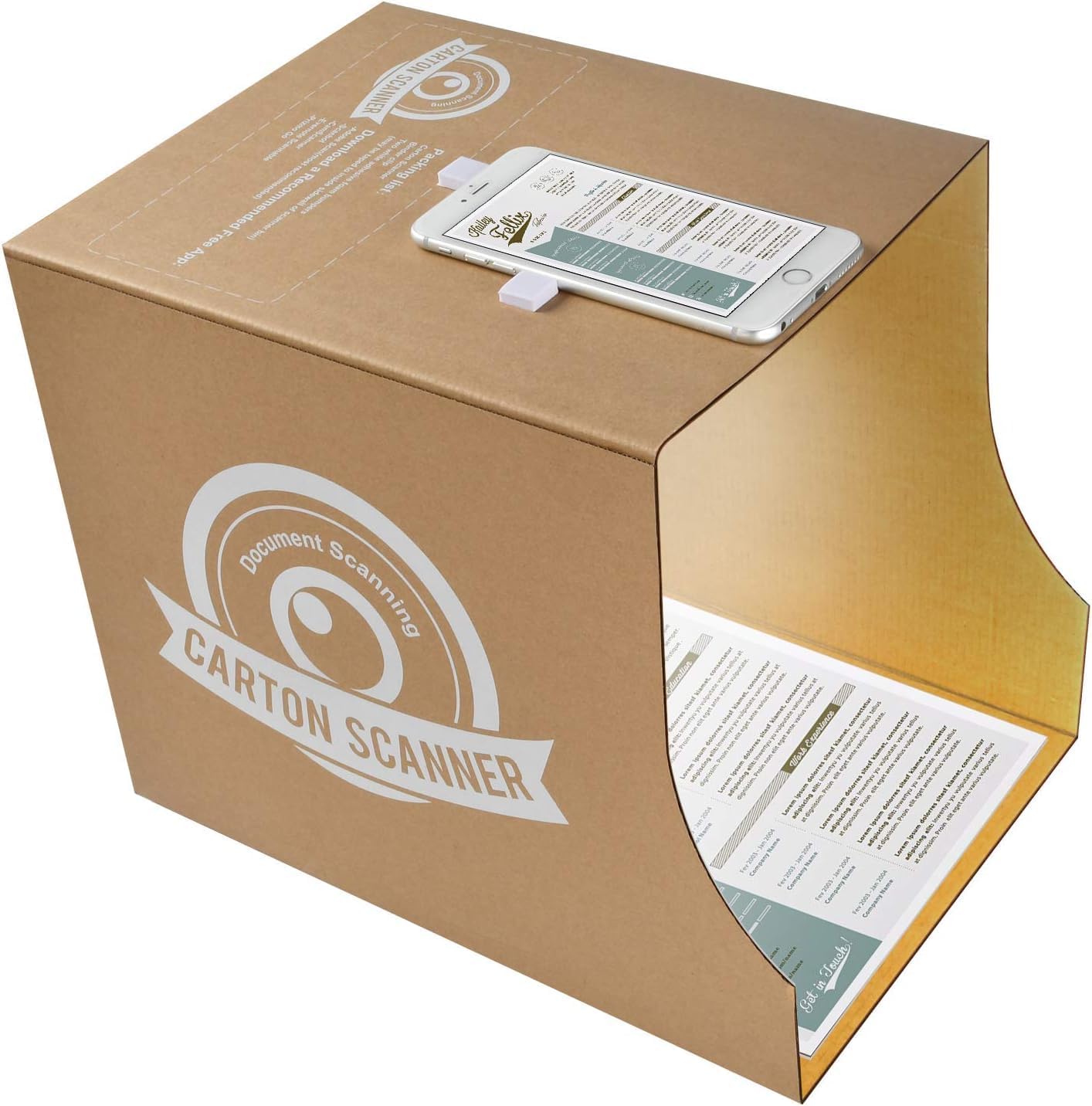 Einzelheiten: Transformieren Sie Ihre Organisationsprozesse und schließen Sie die Lücke zwischen Smartphones und Flachbettscannern mit einfachem Zubehör! Die Scanner-Box ist ein durchdacht gestalteter Ständer, der zusammen mit Ihrem Smartphone Dokumente scannt. Wenn es nicht zum Scannen verwendet wird, kann es als Box zum Aufbewahren von Dokumenten verwendet werden, die Sie später scannen möchten. Darüber hinaus macht sein Design in jedem Büro eine gute Figur. Es beseitigt häufige Probleme beim Scannen von Dokumenten, indem es Ihr Telefon immer auf das Papier ausrichtet, die Beleuchtung steuert und das Papier flach hält. Es ist der nützlichste, stabilste und günstigste Smartphone-Ständer, den Sie finden können ... aber es kommt mehr auf den Prozess als auf das Produkt an. Das ist der Prozess, sich wirklich zu organisieren. Ablauf: Bewahren Sie die Scannerbox unter Ihrem Schreibtisch auf, werfen Sie alles, was Sie zum Scannen benötigen, in die Scannerbox, scannen Sie einmal pro Woche (Stapelscan), nutzen Sie die Möglichkeit, Dokumente zu vernichten, Rechnungen zu organisieren, Quittungen zu verfolgen, Budget festzulegen, Schecks aus der Ferne einzuzahlen, Registrieren Sie Produktgarantien und mehr. Vergessen Sie nicht, anderen bei Bedarf Zugriff auf den Speicherort der Scans zu gewähren (Ehepartner, Partner, Büroangestellter usw.). Häufige Verwendungszwecke/Kunden: – Sehbehinderte Menschen, die den Scanner zum Vorlesen von Briefen verwenden (mit Prizmo Go) – in Eine Minute: Scannen Sie einen Stapel Papier oder ein Notizbuch. – Scannen Sie Quittungen für Rücksendungen und Versicherungsunterlagen. – Studenten digitalisieren damit ihre Notizen. – Scannen Sie Familienfotos. – Immobilienmakler können überall Geschäfte abschließen. – Berufskraftfahrer scannen Quittungen direkt in ihren Autos. – Professionelle Organisatoren (NAPOs) und ihre Kunden – Immobilienverwalter, die Rechnungen scannen – Messeteilnehmer – Kleinunternehmer.