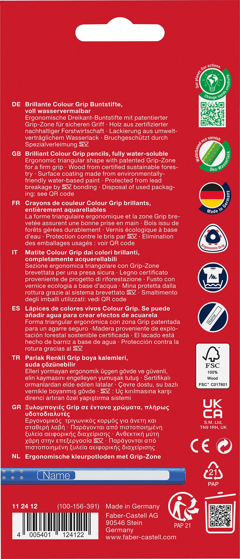 Entdecke die Freude am Zeichnen mit den Faber-Castell Colour Grip Buntstiften, die speziell für kreative Köpfe entwickelt wurden. Der ergonomische, dreieckige Schaft liegt optimal in der Hand und sorgt für bequemes, angenehmes Zeichnen. Die patentierte Soft-Grip-Zone bietet einen rutschfesten Halt, wodurch du deiner Kreativität stundenlang freien Lauf lassen kannst. Dank der wasserlöslichen Pigmente kannst du spielend leicht beeindruckende Aquarelleffekte zaubern, indem du einfach Wasser mit einem Pinsel hinzufügst. Die brillanten Farben und der weiche Farbauftrag machen diese Stifte zur perfekten Wahl für detailreiche Illustrationen und lebendige Skizzen. Der Secural-Bonding-Prozess garantiert zudem eine hohe Bruchfestigkeit und Langlebigkeit der Stifte. Egal ob Rechts- oder Linkshänder - mit einem Namensfeld zur Personalisierung sind diese Buntstifte die optimale Ergänzung für das kreative Repertoire jedes Kindes.