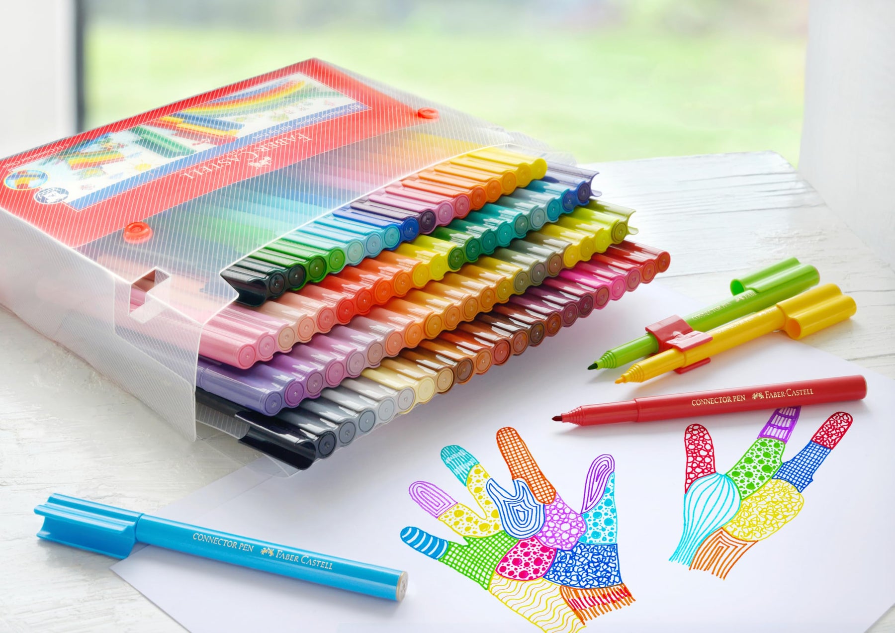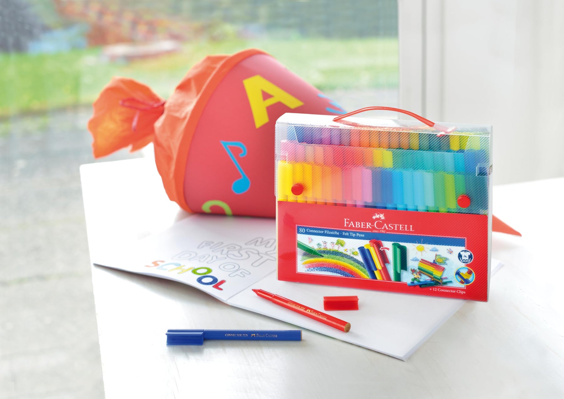 Der farbenfrohe Filzstift CONNECTOR Koffer von Faber-Castell besteht aus 80 Teilen. Die hochwertigen, bunten Filzstifte besitzen einen Kunstoffschaft. Die Rundspitzen mit einer Strichstärke von 3 mm sind druckgesichert. Die Tinte basiert auf Wasserbasis und ist nicht auswaschbar. Die Stifte sind mit einem besonderen Clip zusammensteckbar. Als eines der ältesten familiengeführten Industrieunternehmen der Welt zählt Faber-Castell zu den führenden Herstellern und Vermarktern von hochwertigen Produkten zum Schreiben, Malen und kreativen Gestalten. Seine Position verdankt das Unternehmen der traditionellen Selbstverpflichtung zu höchster Qualität und der großen Zahl von Produktinnovationen und -verbesserungen. Nach einer wissenschaftlichen Studie des TÜV Rheinland im Jahr 2015 kann sich Faber-Castell als weltweit erstes Unternehmen der Branche als vollständig klimaneutral bezeichnen und leistet damit einen echten Beitrag zum Klimaschutz.