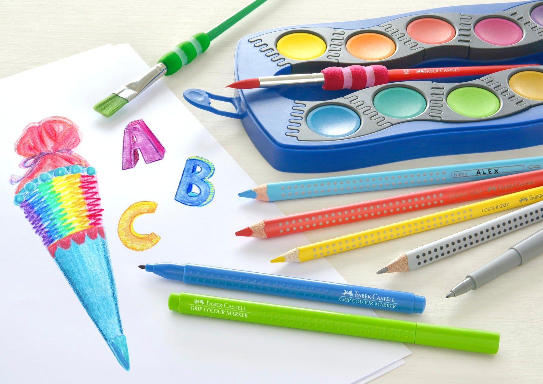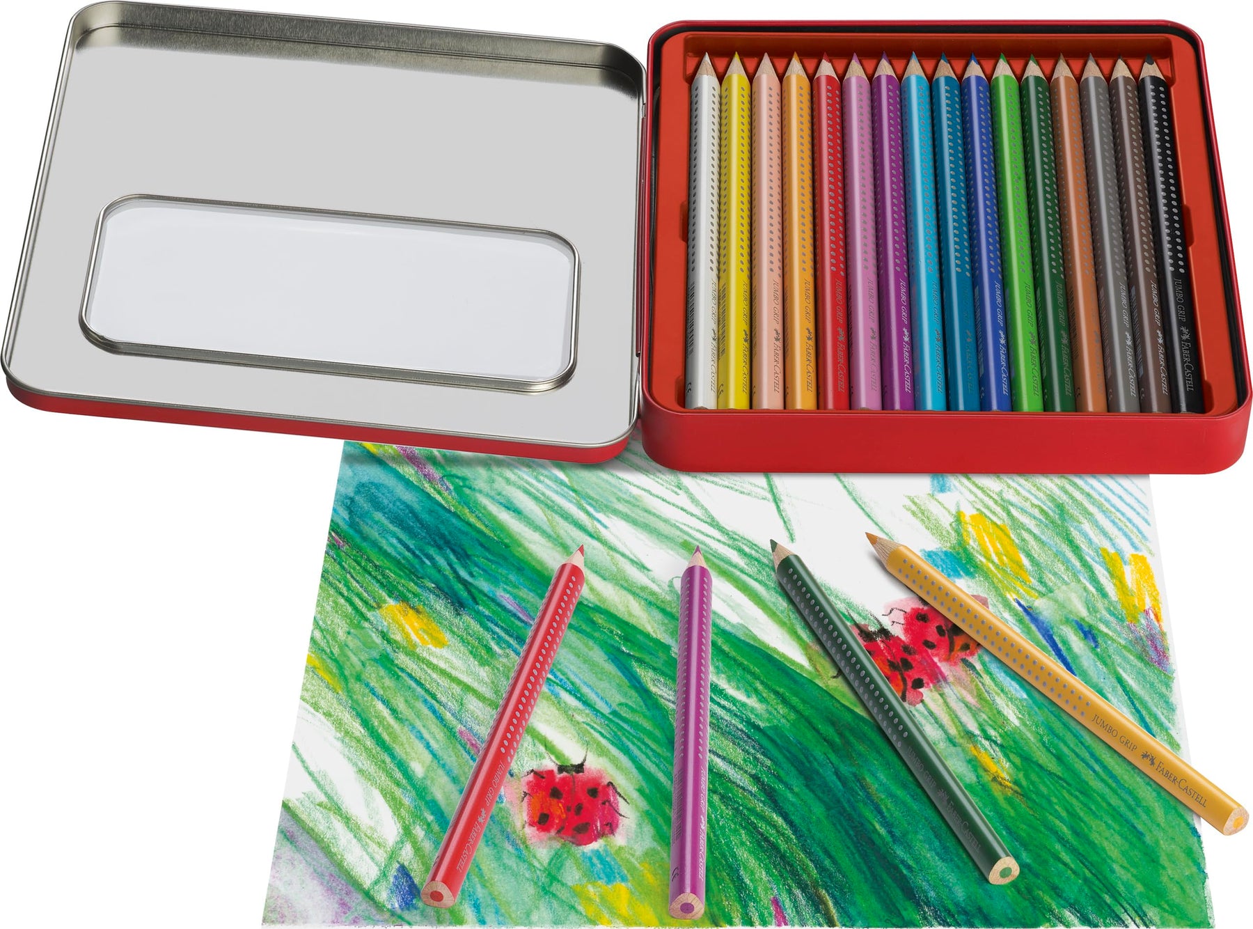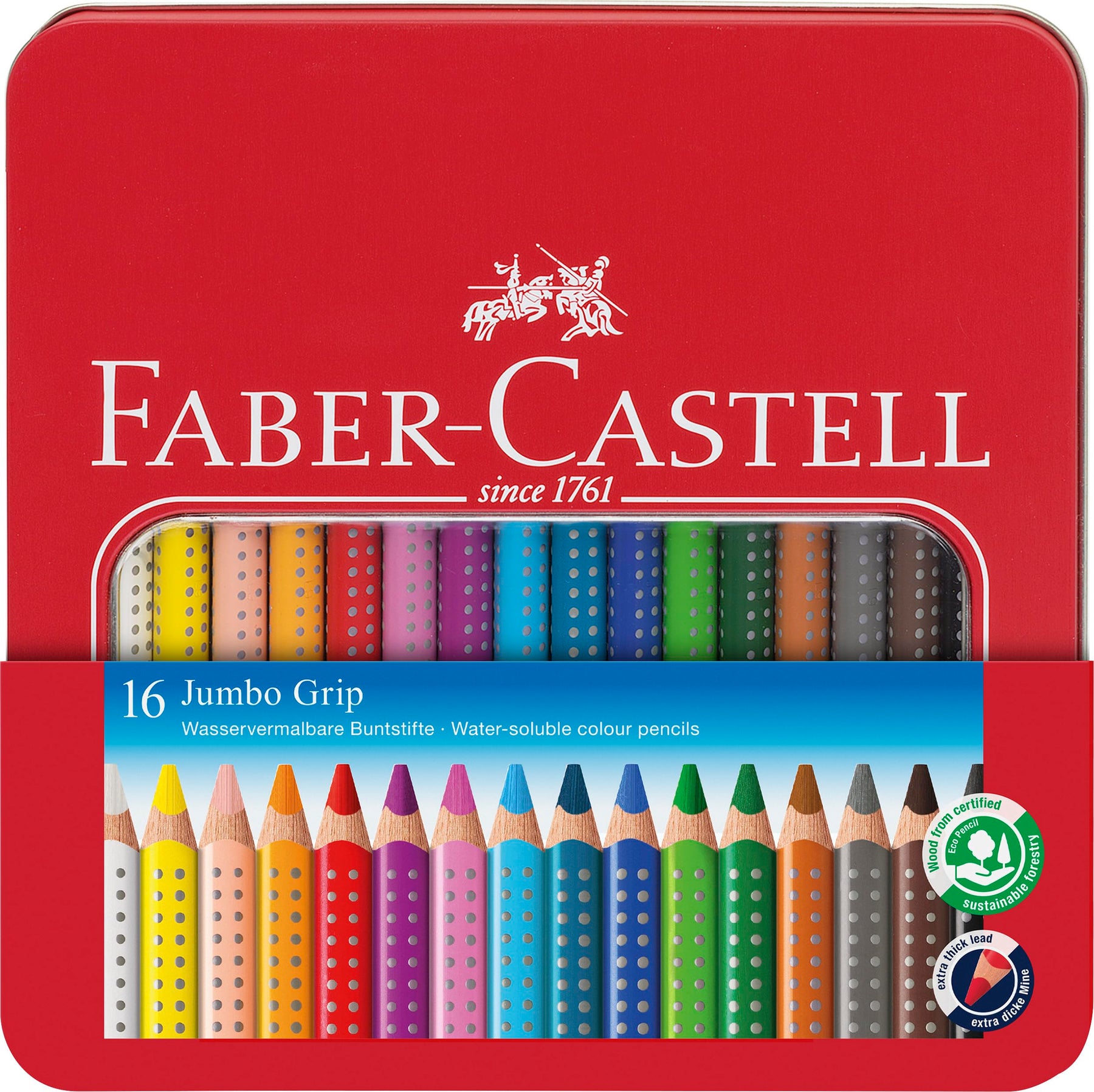 Das Buntstifte Set Schulanfang ist der ideale Begleiter für den Start in das neue Schuljahr. Es enthält 16 Jumbo Buntstifte Grip im Metalletui und einen Metallspitzer, um alle Bedürfnisse Ihres Kindes abzudecken. Die ergonomische Dreieckform und die patentierte Soft-Grip-Zone der Stifte sorgen für einen sicheren Halt und ermöglichen ermüdungsfreies Malen. Besonders beeindruckend sind die wasservermalbaren Pigmente, die wunderschöne Aquarelleffekte zaubern, wenn die Farben mit einem feuchten Pinsel vermalt werden. Die extra dicken Minen sind bruchsicher dank der speziellen Verleimung und ermöglichen langanhaltenden Malspaß. Die Stifte sind aus den meisten Textilien auswaschbar und sowohl für Rechts- als auch für Linkshänder geeignet. Mit diesem Malset ist Ihr Kind bestens für kreative Schulprojekte und den täglichen Gebrauch ausgestattet. Weitere Artikel finden Sie in unserem Marken Shop. Klicken Sie dazu auf den Markennamen Faber-Castell unterhalb des Produkttitels.