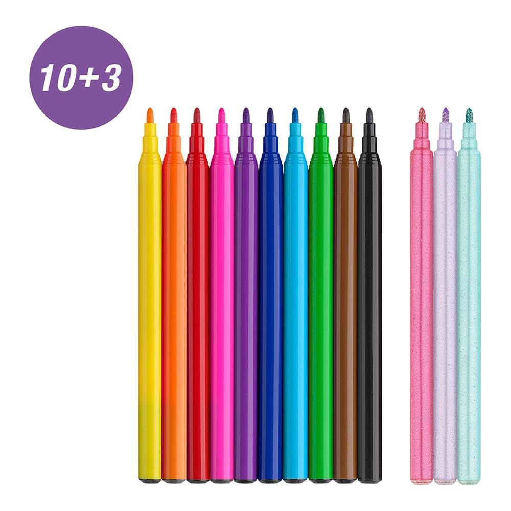 • Buntes Filzstifte Set für kreative Köpfe: Das Set enthält 18 Filzstifte in lebendigen Standard Farben sowie 6 Glitzer Pastell Filzstifte - für alle, die gerne zeichnen, malen und kreativ sind