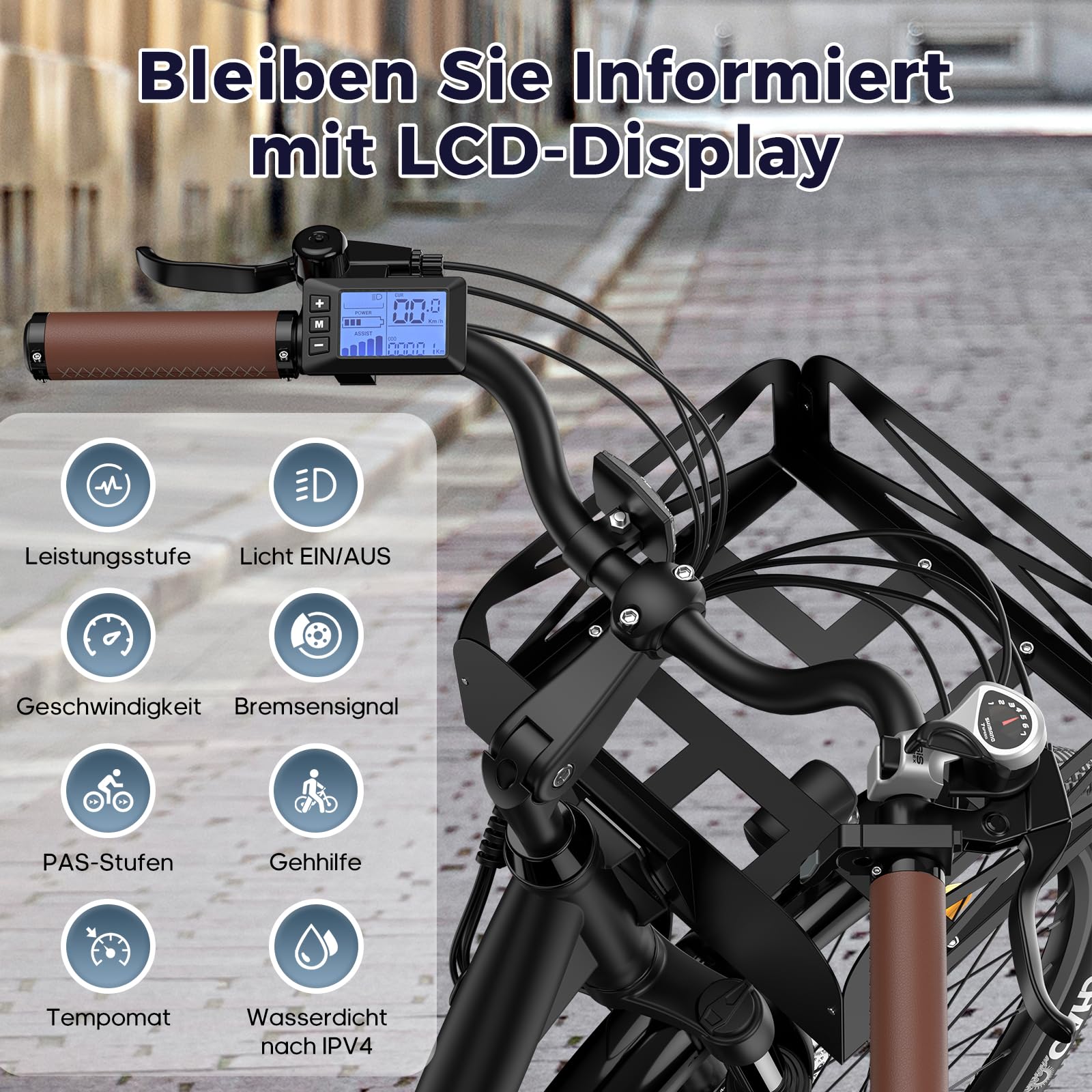 - Innovatives Display: Das 2,3-Zoll-LCD-Display zeigt alle wichtigen Informationen auf einen Blick an und verfügt über eine 6-km/h-Gehhilfefunktion, die das Fahren erleichtert.