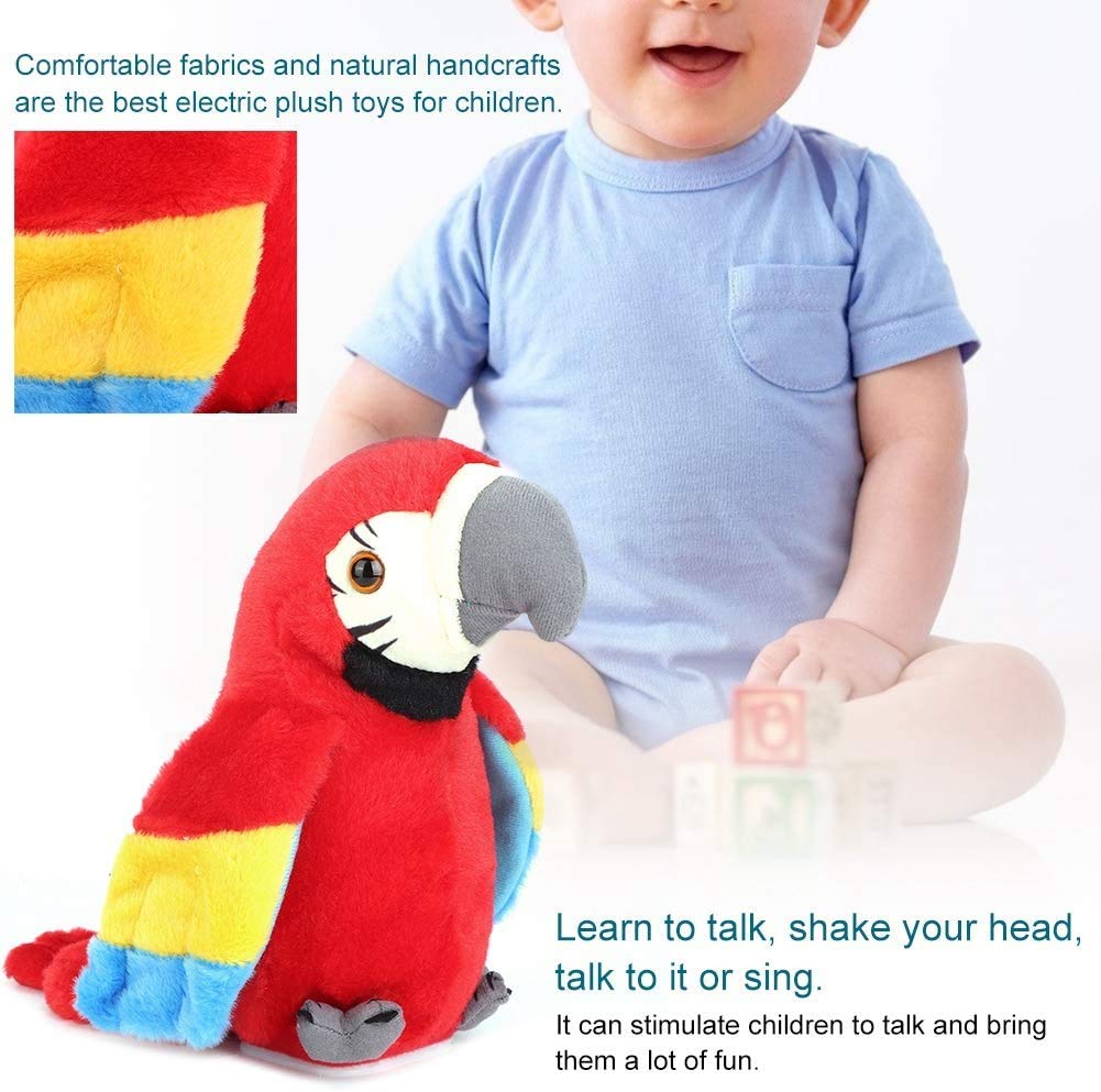 - WEICHES & SICHERES MATERIAL: Dieser sprechende Papagei besteht aus matschigem Plüsch und strapazierfähigem ABS-Kunststoff. Das warme Fell des kleinen elektronischen Tieres ist weich, fühlt sich angenehm an und ist völlig hypoallergen. Es ist perfekt für Schlafenszeit und Spielzeit. Ihr Kind wird die Zeit mit diesem Vogelhaustier genießen.