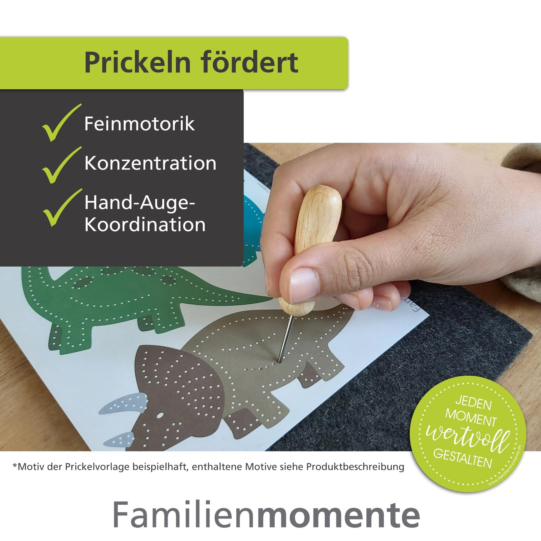 - Prickeln ist eine alte Basteltechnik, die nicht nur Spaß macht, sondern gleichzeitig die Feinmotorik, Konzentration und Hand-Auge-Koordination fördert.