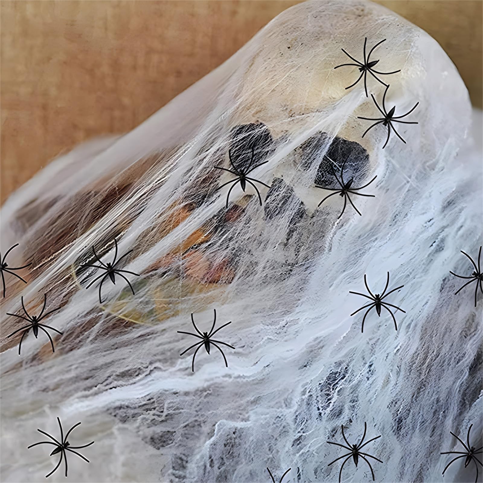 - Albtraum-Grundlage in 200 g – Ein einziges, superelastisches Spinnennetz breitet sich wie ein schwarzer Schleier über Ecken, Möbel oder ganze Hauswände und verwandelt gemütliche Räume blitzschnell in schaurige Spuk-Zonen