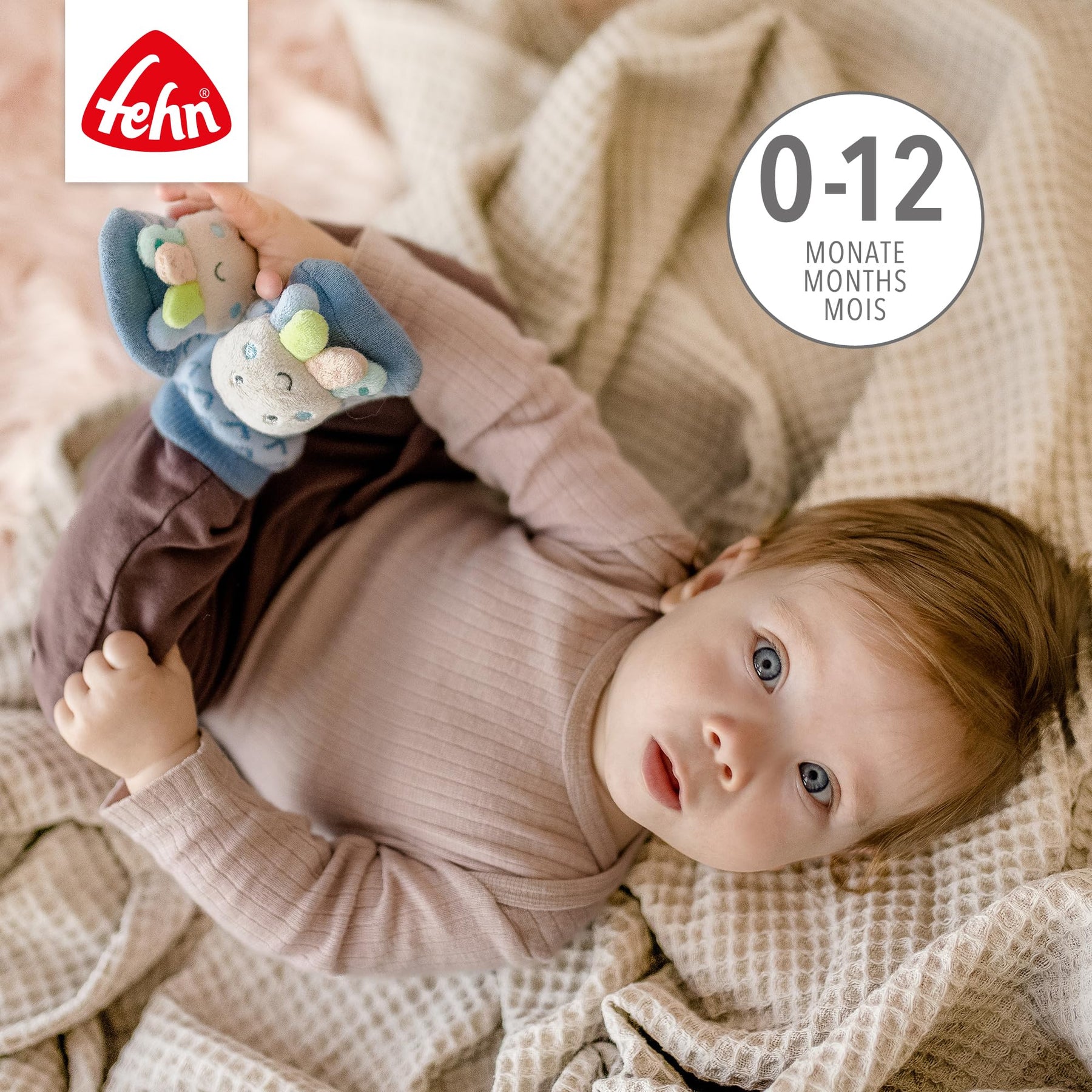 Fehn 054361 Rasselsocken Oktopus – Flauschige Babysocken mit Oktopussen und Rassel – Fördern Motorik & Sinne – Für Babys zwischen 0 und 12 Monaten – Größe: 12 cm