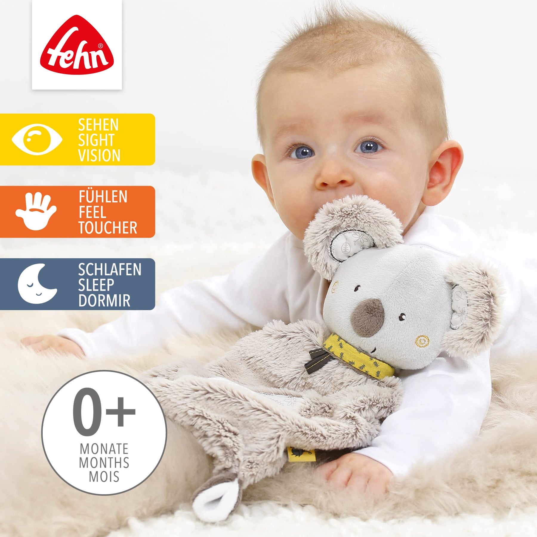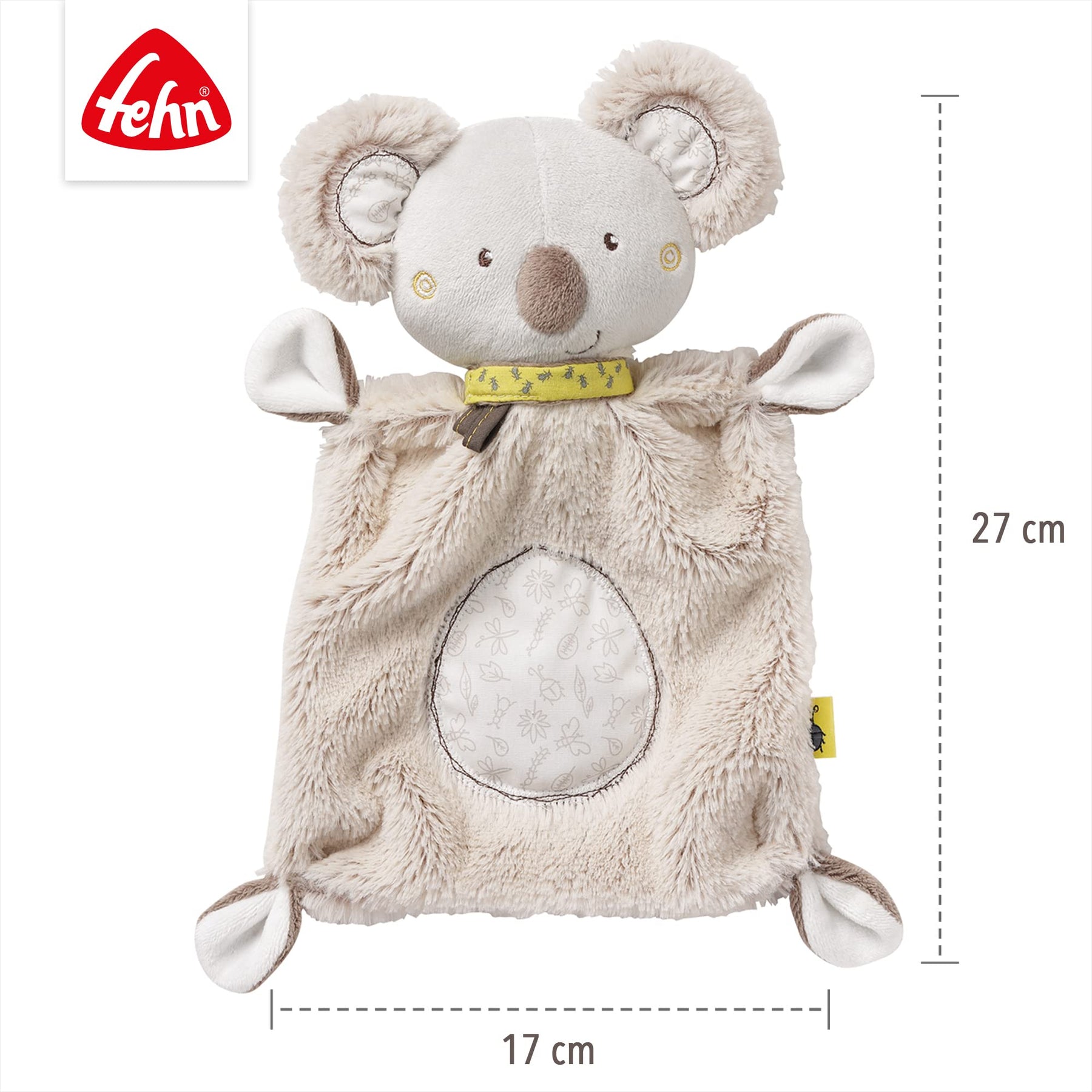 fördern die Motorik und den Tastsinn des Babys. Der süße, kleine Koala lädt zum Spielen, Entdecken und vor allem Kuscheln ein! Produktinformationen Schmusetuch mit Koala-Kopf und Motiv aus der Australia Kollektion Zum Greifen, Fühlen und Knuddeln Für Babys und Kleinkinder ab 0+ Monaten Obermaterial: Softvelours, Stoff und Plüsch Bei 30°C waschbar Ideal als Geschenk zur Geburt, Taufe oder als Geburtstagsgeschenk für Babys und Kleinkinder Von unabhängigen Testinstituten auf Sicherheit geprüft Fehn