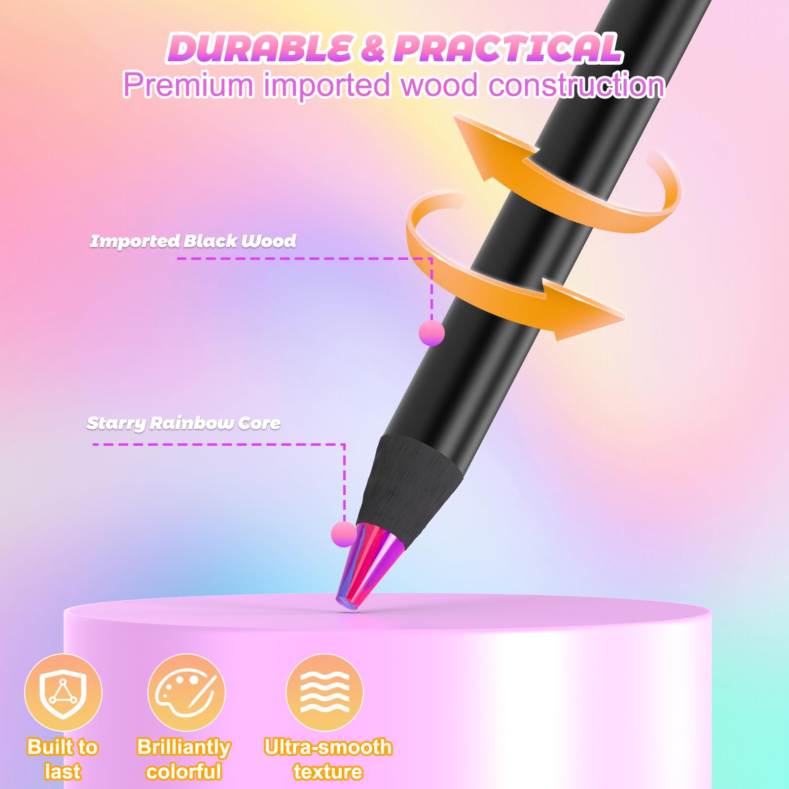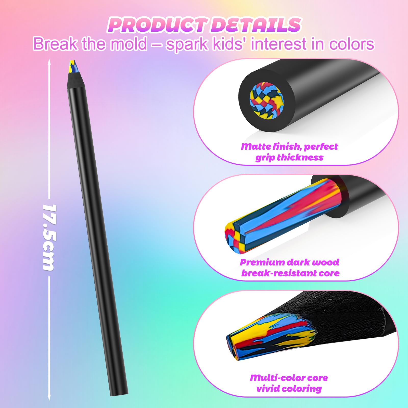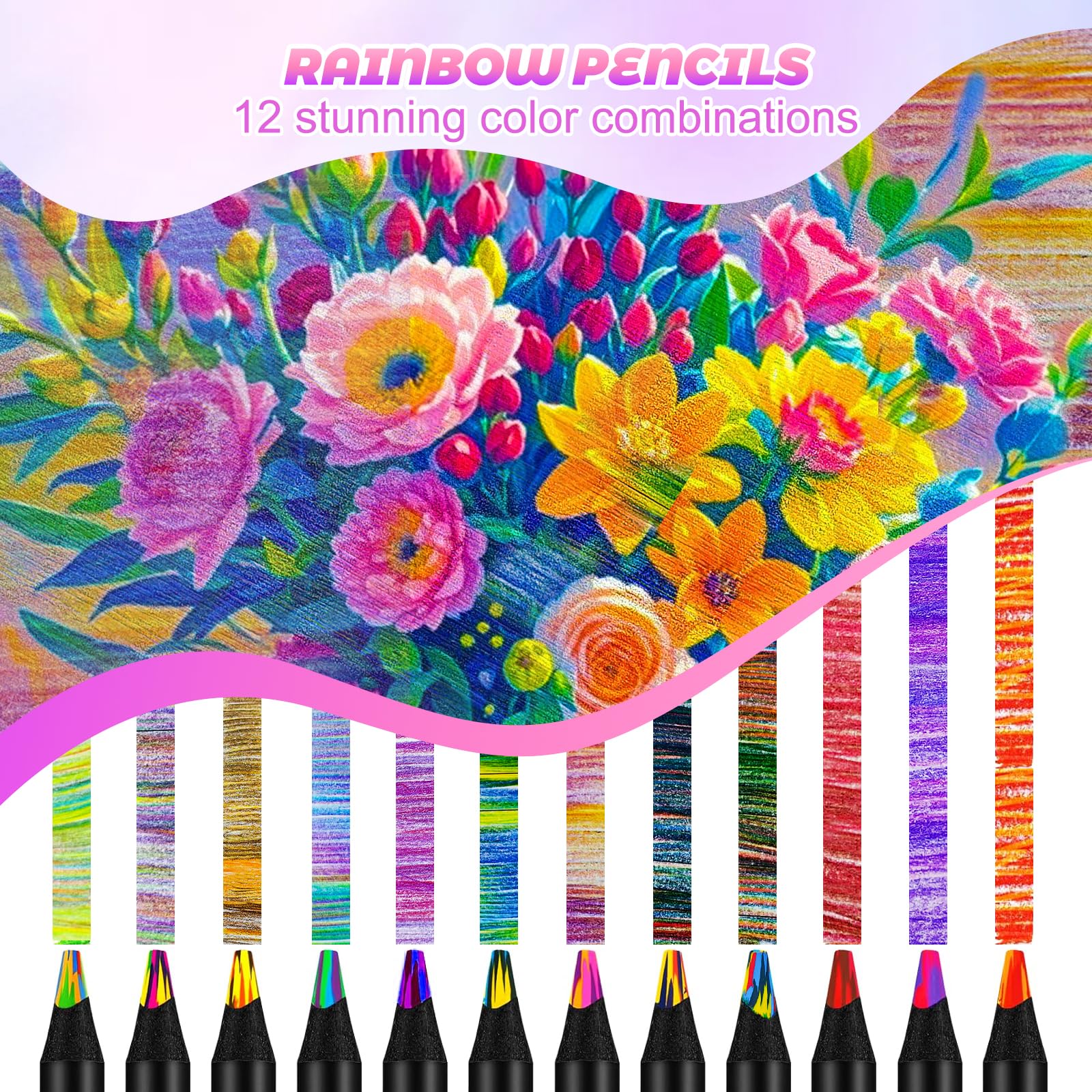 - Kreativität Fördern: Dieses Regenbogen-Buntstiftset für Kinder hat Minen, die aus mehr als drei Farben gemischt sind. Die wechselnden Farbverläufe sorgen beim Malen für überraschende Effekte und machen jedes Bild einzigartig. Ideal für kreatives Malen, Skizzieren und Graffiti. Die Stifte sind handlich, platzsparend und passen in jede Tasche oder jeden Rucksack – perfekt, um die Kreativität überall zu entfalten