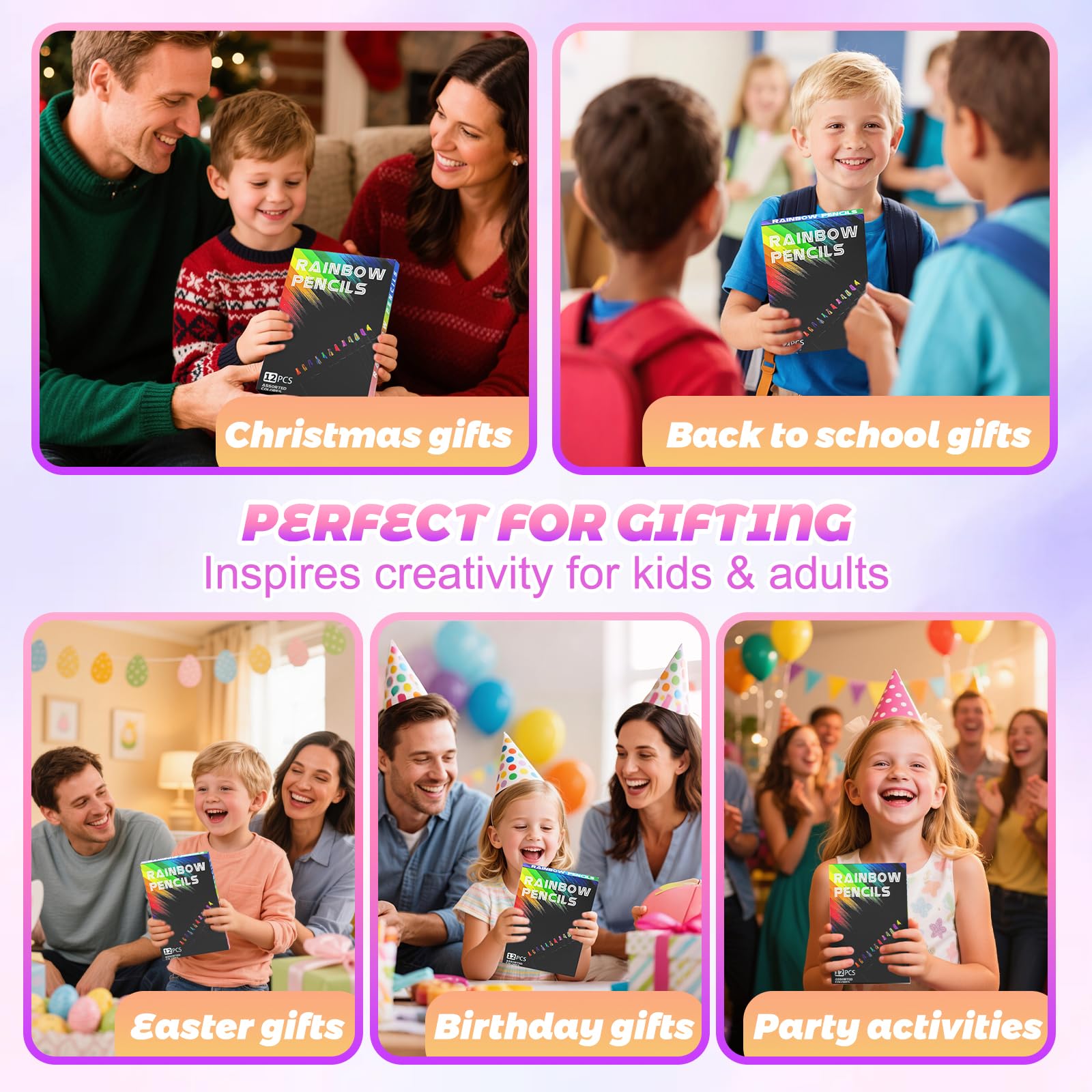 - Praktisches Geschenk: Das Regenbogen Stifte Set ist eine ideale Geschenkidee für Kinder und Erwachsene. Perfekt zu Weihnachten, Ostern, Schulanfang, Kindergeburtstag oder als Mitgebsel für Party und Unterricht. Auch als kreatives Geschenk zum Geburtstag oder kleine Belohnung bestens geeignet