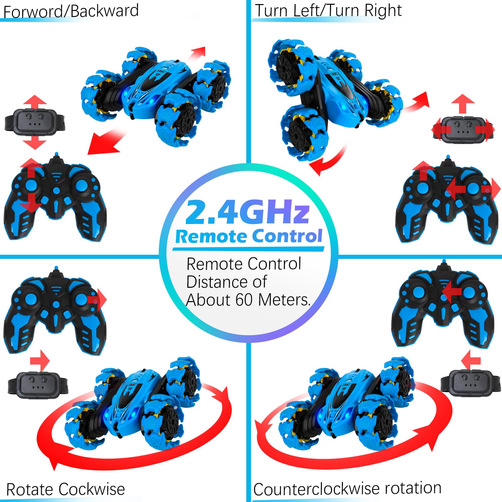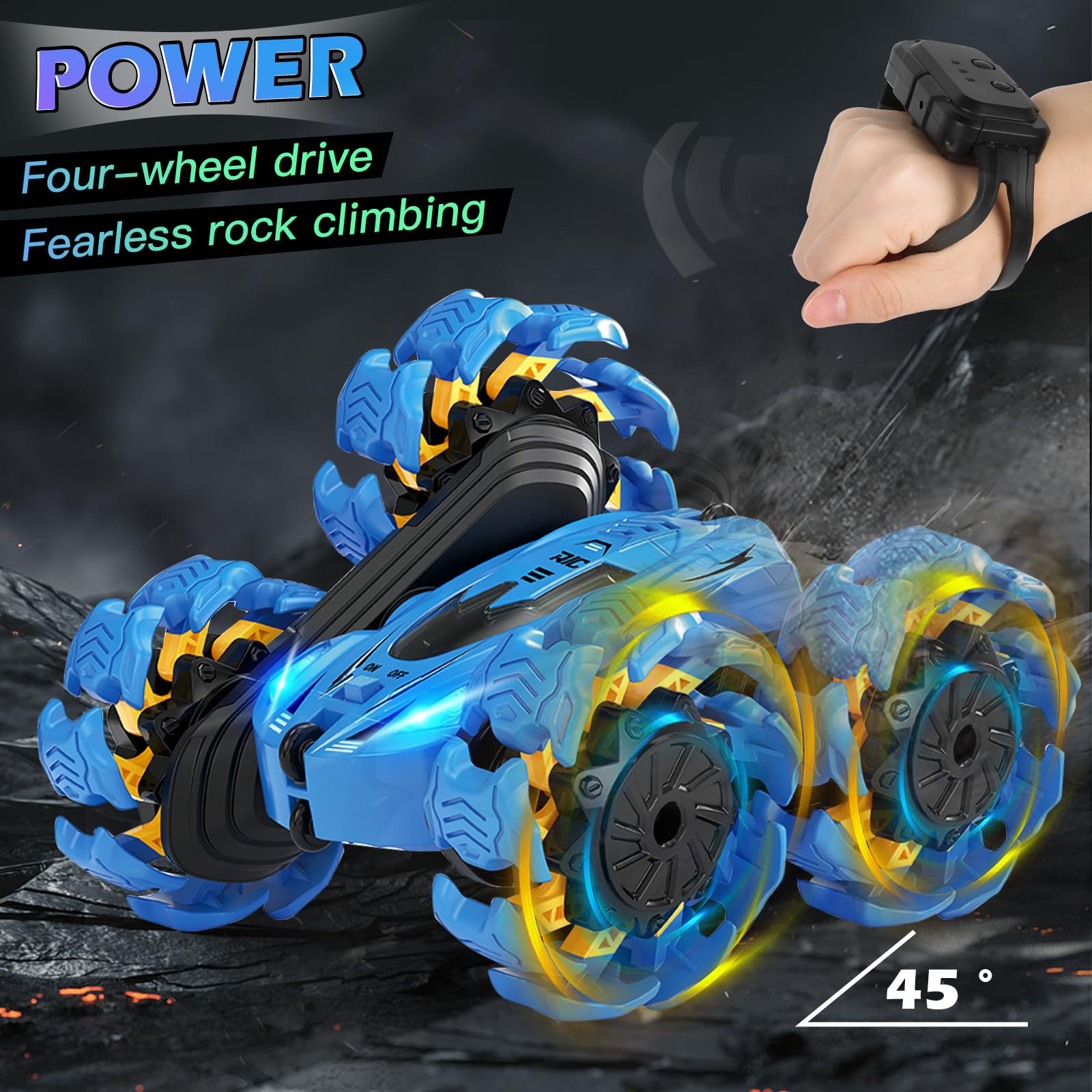 - 2-STEUERMODI FÜR SPEKTAKULÄRE STUNTS: Ferngesteuertes Auto mit 360°-Drehung, Vorwärts/Rückwärts, Drifts + Seitwärtsfahrt! Steuerung per Fernbedienung oder intelligenter Uhr - perfekt für Kinder ab 3 Jahren.
