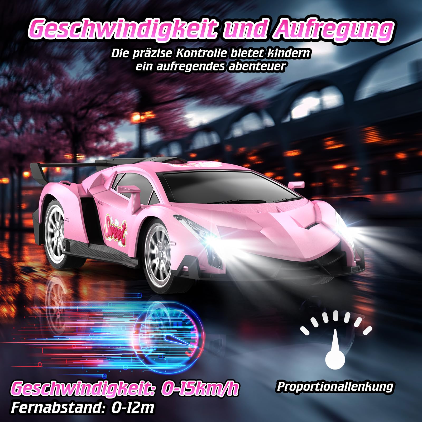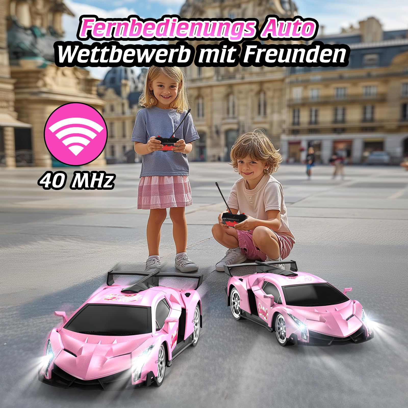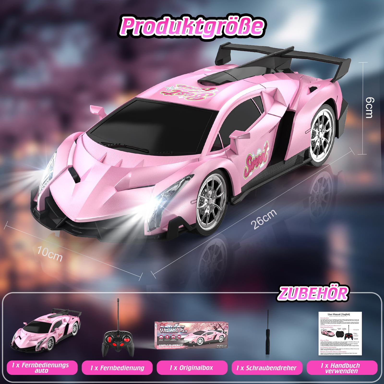 - Spielzeug, Geschenke und Sammlerstücke: Das rosa ferngesteuerte Auto ist für eine breite Palette von Benutzern von Kindern bis zu Erwachsenen geeignet. Es ist nicht nur ein Autospielzeug, ein Geburtstags-, Weihnachts- oder Feiertagsgeschenk für Mädchen und Prinzessinnen, sondern auch eine großartige Automodellsammlung für junge Autoliebhaber und erwachsene Sammler, die unterhaltsame Rennspiele und die Möglichkeit bietet, eine Miniaturversion eines edlen Sportwagens zu besitzen.