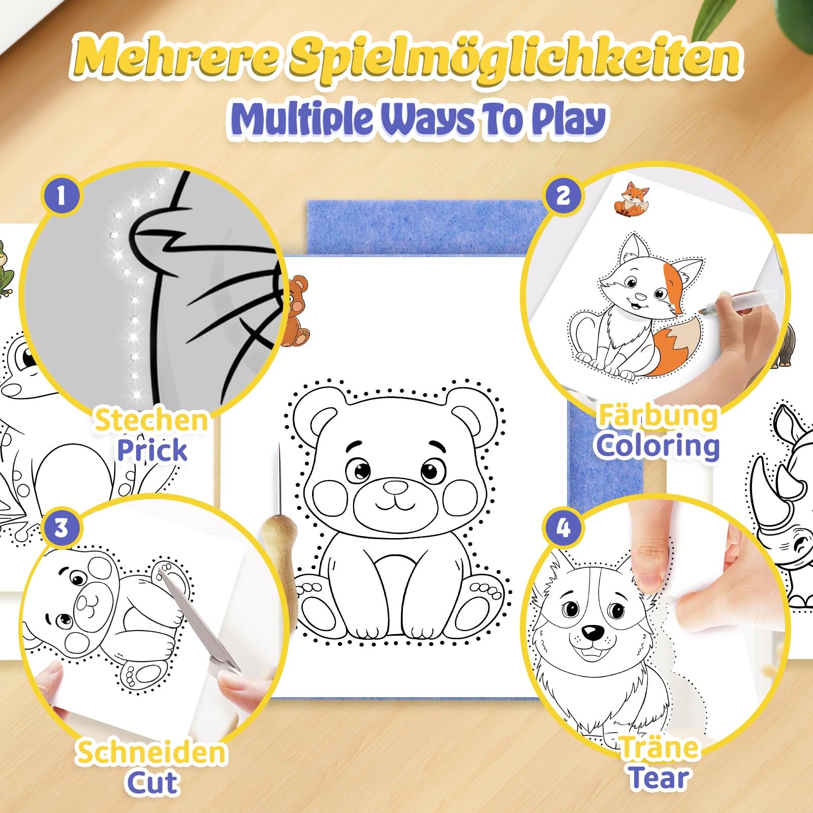 • Kreativität und Spaß: Mit 10 verschiedenen Tierstickbildern können Kinder die magische Welt der Tiere erkunden und gleichzeitig ihre eigenen Kunstwerke schaffen. Mit unserem Prickelnadel Set inkl. Stickbilder für Kinder wird neben einer kreativen Beschäftigung auch die Fingerfertigkeit, Konzentration der Stolz der Kinder gefördert. Unser Prickelset die Entwicklung der Feinmotorik, Hand-Auge-Koordination und regt die kindliche Kreativität an.