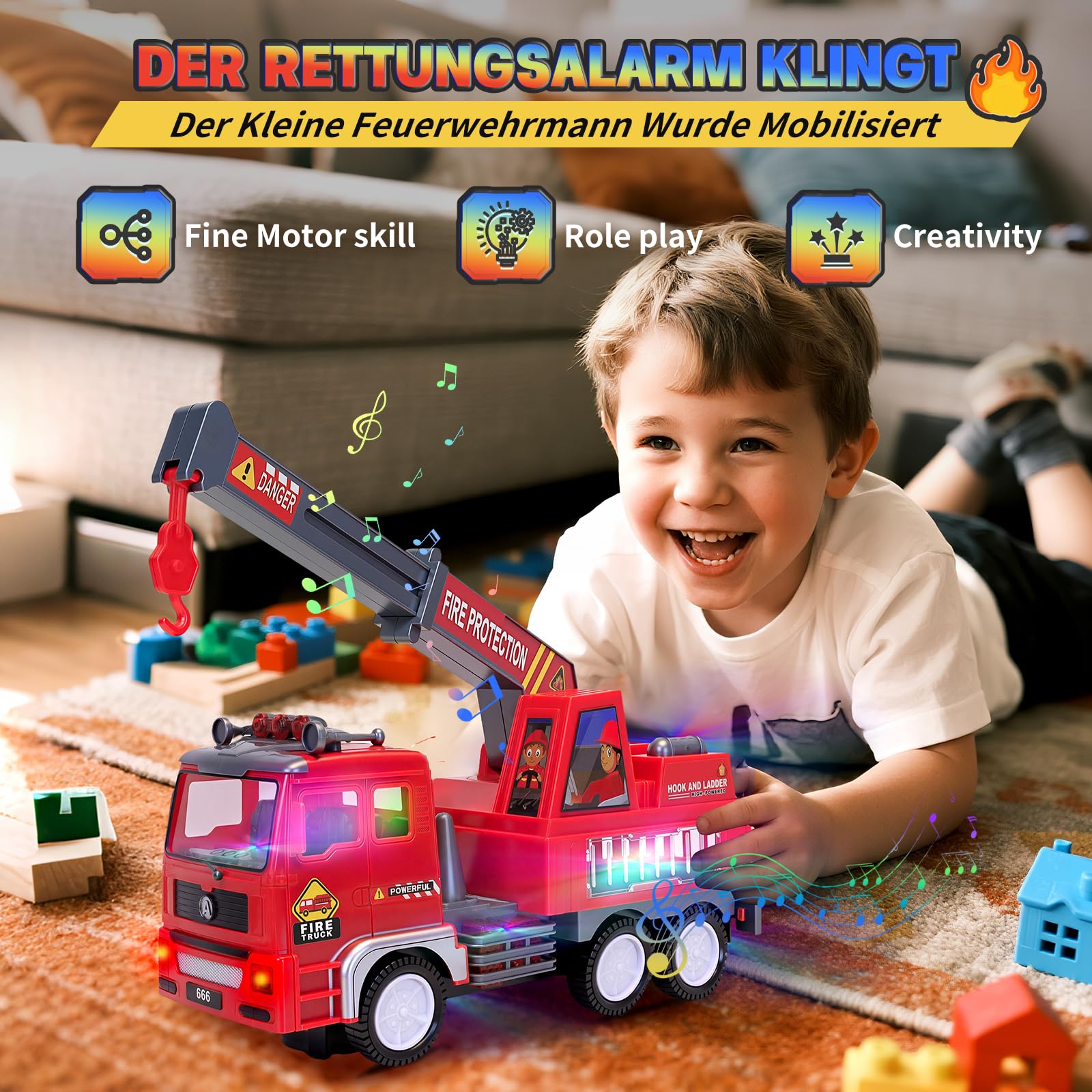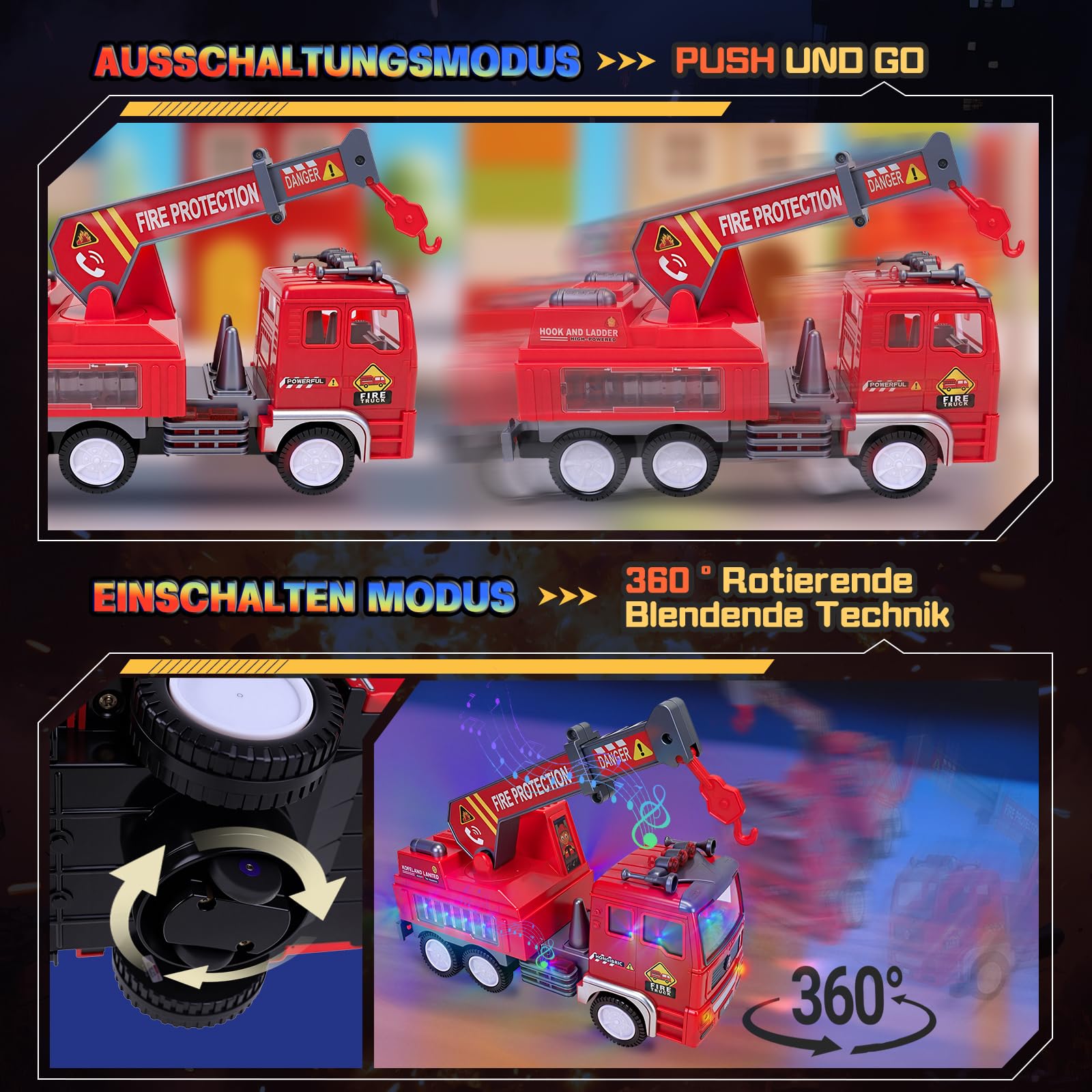 • ❀Lern- und interaktives Spielzeug❀ - Die 4D-Lichter und der Feuersirenenton des Feuerwehrautos können die sensorische Wahrnehmung von Kindern fördern, ihre Aufmerksamkeit erregen, Fantasie und Augen-Hand-Koordination entwickeln. Es ist ein ausgezeichnetes Lernspielzeug