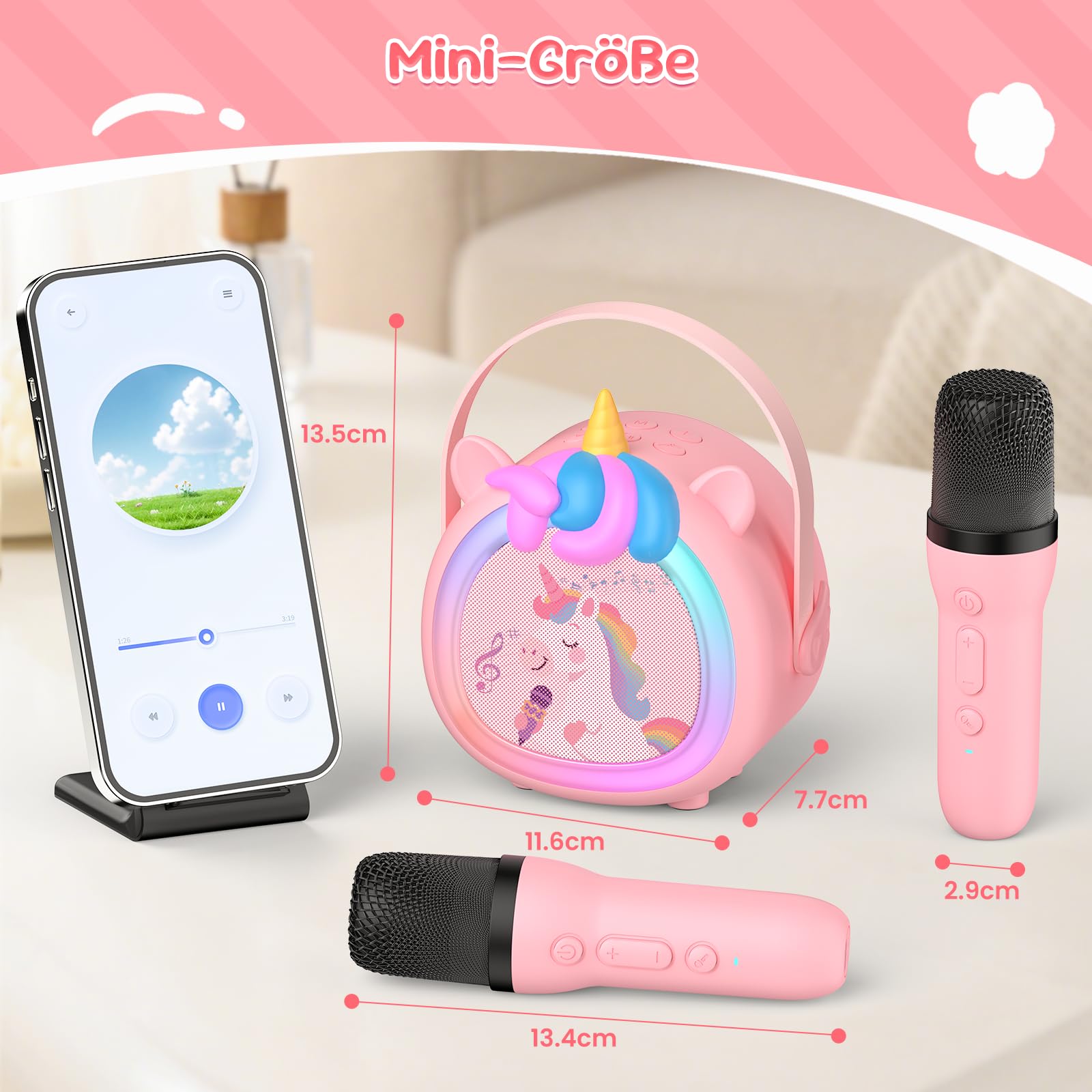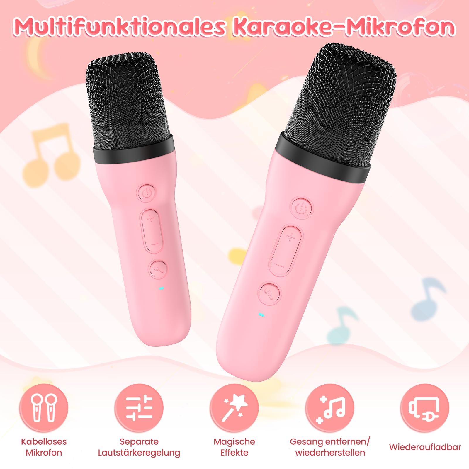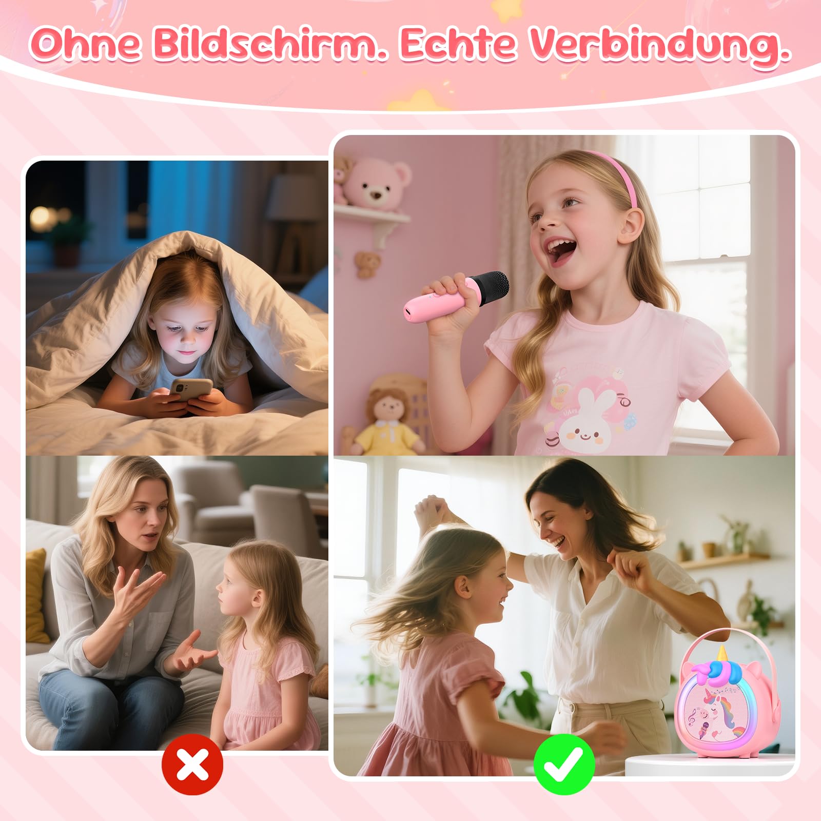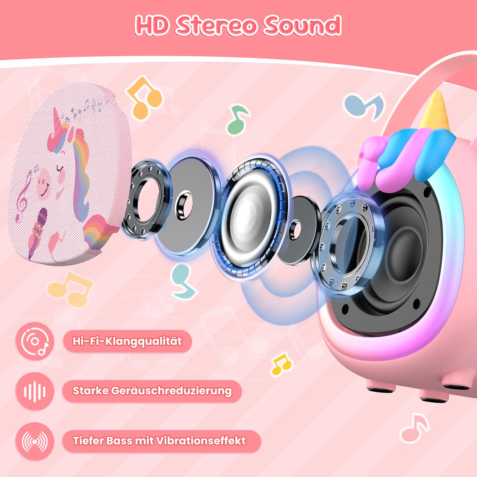 - HD-Stereoklang mit Geräuschunterdrückung:Dieses Kinder Karaoke Set verfügt über integrierte HiFi Lautsprecher und fortschrittliche Geräuschunterdrückung. So bietet es klaren Klang und ein mitreißendes Musikerlebnis. Mehr als nur ein Spielzeug.Es ist ein tragbarer Lautsprecher für Partys, Reisen oder Spaß im Freien.