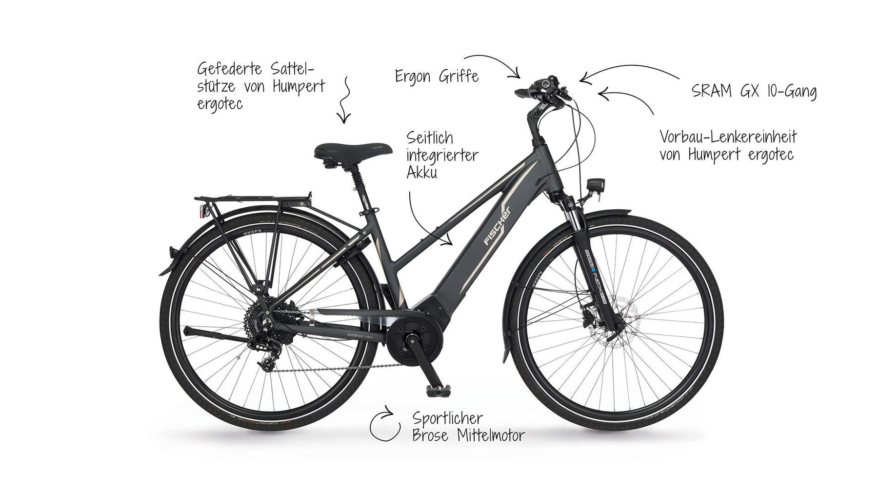 Einzelheiten: Perfekte Symbiose aus Eleganz und Sportlichkeit: Der voll in das Unterrohr integrierte Akku und der leise Brose Drive C Mittelmotor des Trekking Pedelecs. Für ein natürliches Fahrgefühl sorgt eine individuell konfigurierte Trittunterstützung. Attraktive Ausstattungsmerkmale runden das Gesamtpaket ab. Konnektivität via Bluetooth und eigener E-Connect-App ist onboard. Das Modell ist außerdem für unsere FISCHER Kinderanhänger geprüft.
