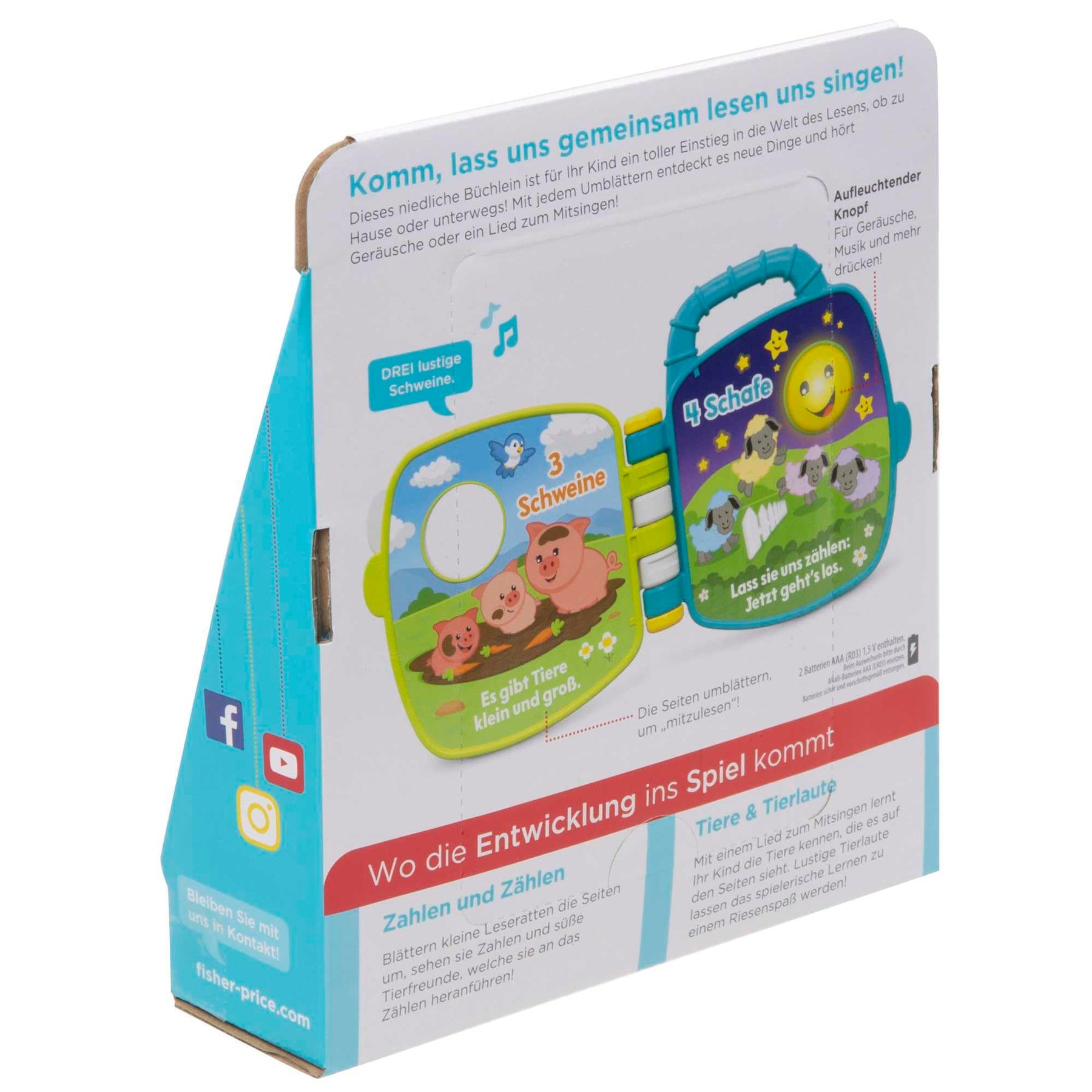 Babys lieben Fisher-Price Kinderbücher mit Musik und Lichtern. In unserem Tierfreunde-Liederbuch für Jungen und Mädchen gibt es aber auch nette Tiere! Mit diesem Soundbuch zum Mitnehmen lernen Kleinkinder ab 6 Monaten/1 Jahr Tiere und Zahlen kennen. Für noch mehr Spaß sorgen ein Lied & Tiergeräusche.