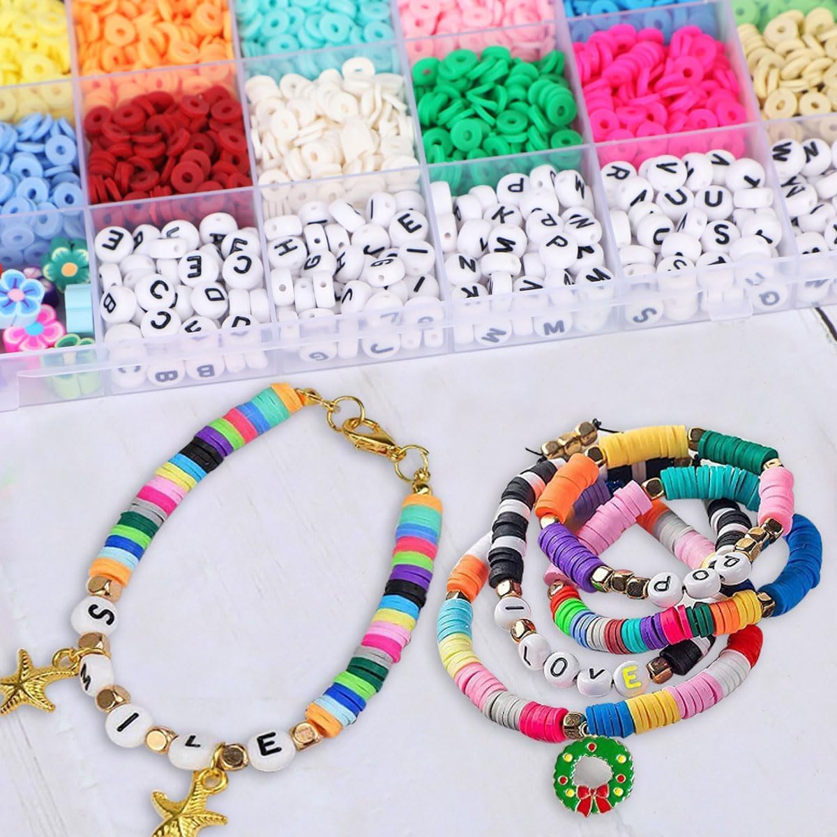 • 【Exquisite Einzigartige Geschenke】Diese clay beads sind in 24 lebendigen Farben erhältlich und bieten unendliche Möglichkeiten, um schöne Geschenke herzustellen. Egal ob für Ihre Lieben oder Ihre besten Freunde, dieses Armbandperlen-Set ist eine hervorragende Wahl, um ihnen noch mehr Charme zu verleihen. Diese Perlen sind das perfekte sinnvolle Geschenk für Geburtstage, Valentinstag, Muttertag, Weihnachten oder Erntedankfest.