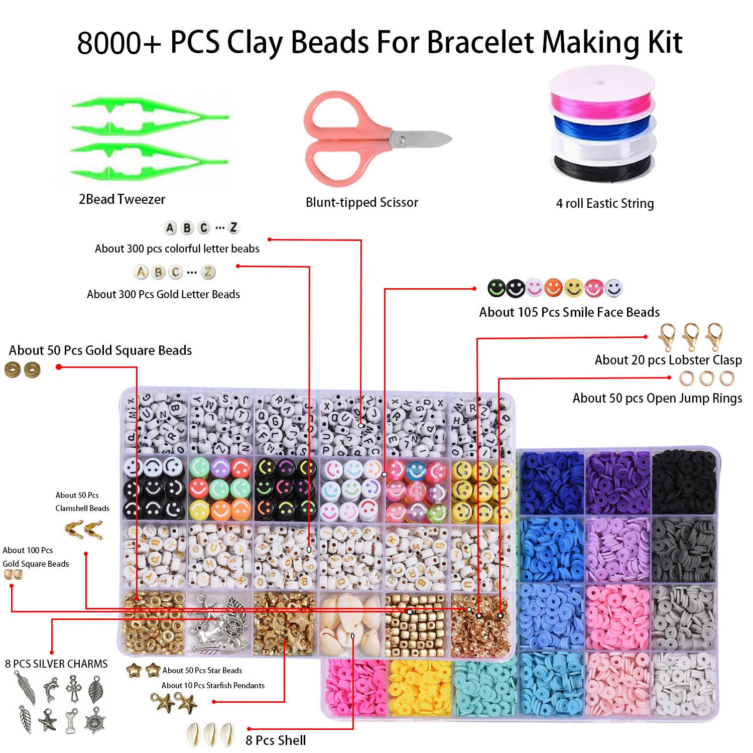• 【Bunte Perlen Set】Dieses bunte perlenset für armbänder ist die beste Wahl, um ein einzigartiges und auffälliges Schmuckstück zu kreieren! Es enthält etwa 7000+ clay beads und 1100+ schmuck selber machen set, die Ihnen die Möglichkeit geben, Ihre Kreativität und Vorstellungskraft voll auszuschöpfen und alle Ihre Armband- und Schmuckherstellungsbedürfnisse zu erfüllen.