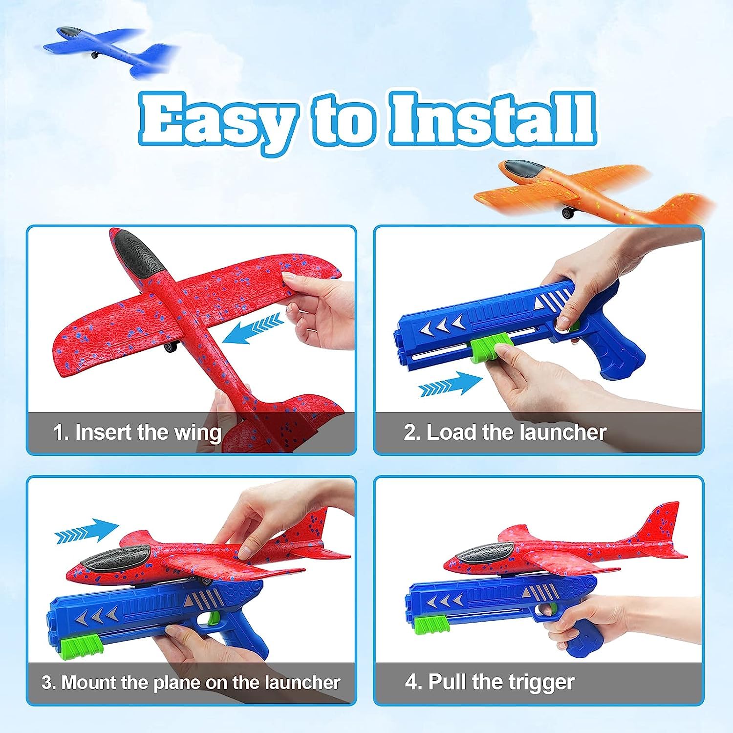 - ✈️🛩️ 【Flugzeugspielzeug】Das Katapultflugzeug-Spielset enthält 1 Trägerrakete, 4 Schaumstoffflugzeug. Ideal für Geburtstagsgeschenke und Weihnachtsgeschenke für Kinder ab 3 Jahren.