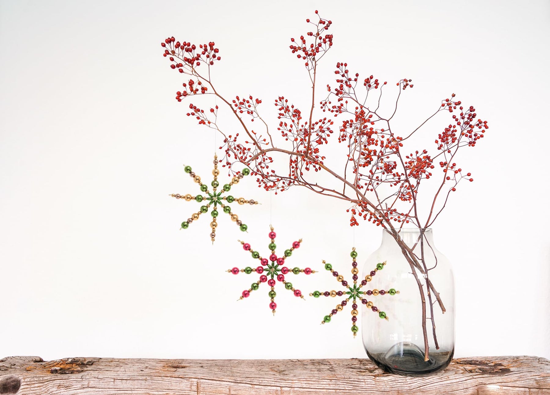 Sie erhalten eine Packung mit 340 Teilen zum Basteln von 5 glanzvollen Perlensternen. Es sind verschiedene Perlen in den Farben rot, gold und grün enthalten. Die Sterne eignen sich z.B. hervorragend zum Schmücken des Weihnachtsbaumes oder als weihnachtliche Fensterdekoration.