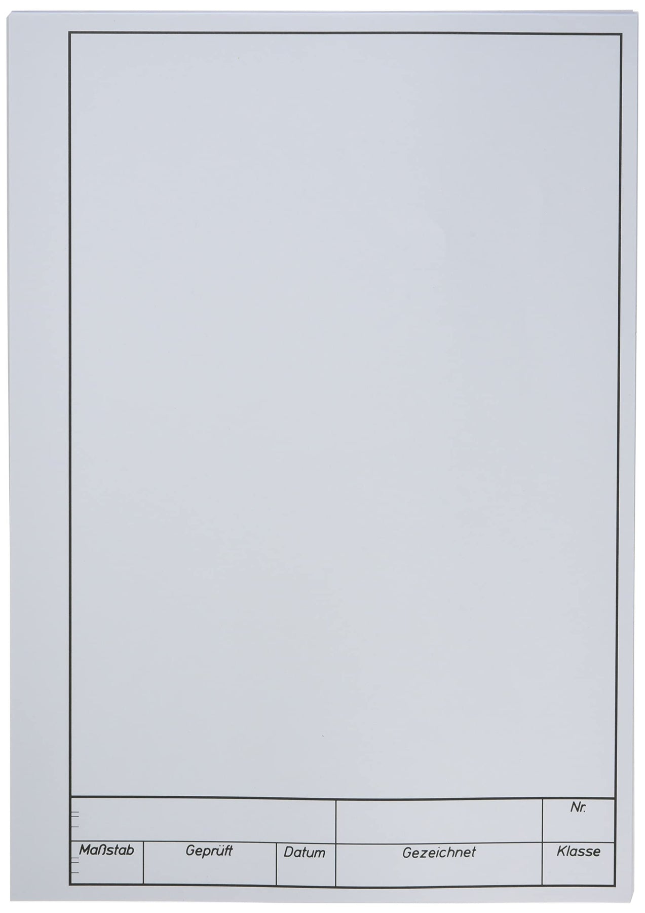 Sie erhalten einen Block im DIN A4 Format mit 10 Seiten weißem Zeichenpapier. Die Blätter haben eine Grammatur von 120 g/qm und sind ideal für technische Zeichnungen. Sie haben am unteren Seitenrand einen Arbeitsblattvordruck mit Feldern für die Angaben Nr., Maßstab, Geprüft, Datum, Gezeichnet und Klasse.