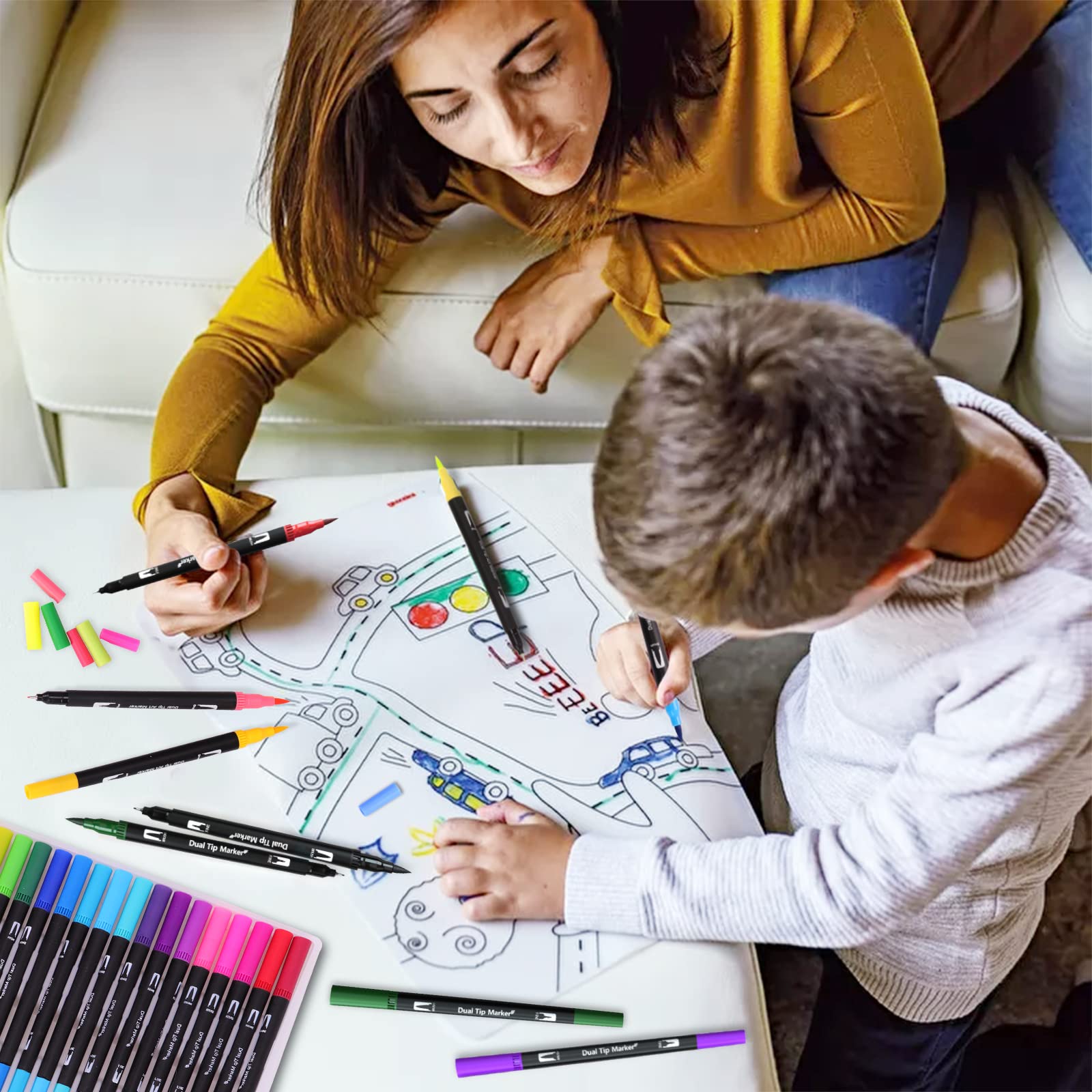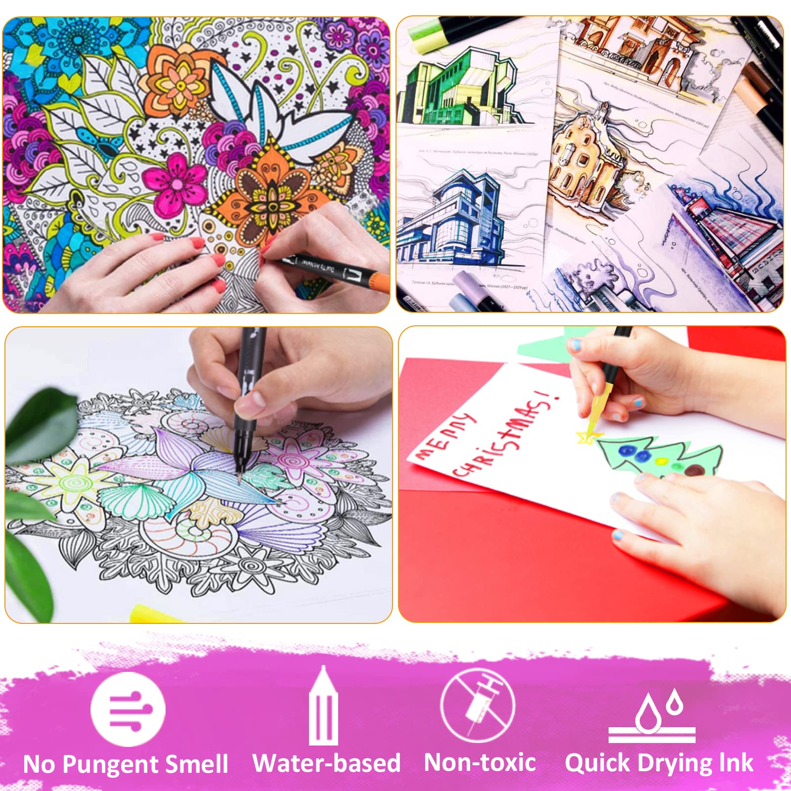 - ✏ DOPPELSPITZEN: Fineliner Spitze (0,4 mm) für Umrisse und Details, Pinselspitze (1-2 mm) zum Färben und Malen mit ausgezeichneter Vielseitigkeit und Flexibilität. Doppelte Filzstifte kann leicht verschiedene Stile kreieren und den Charme der Kunst spüren.