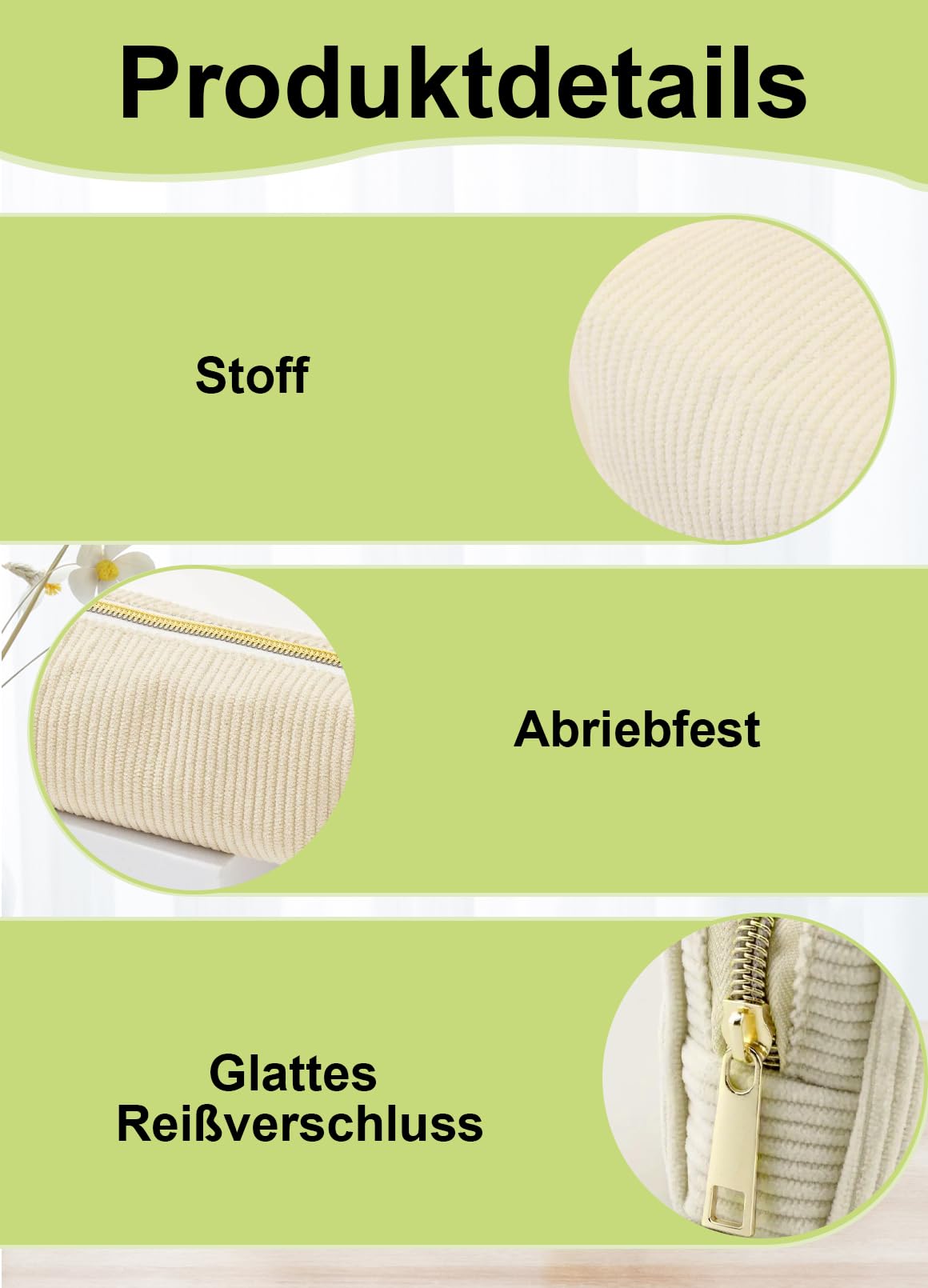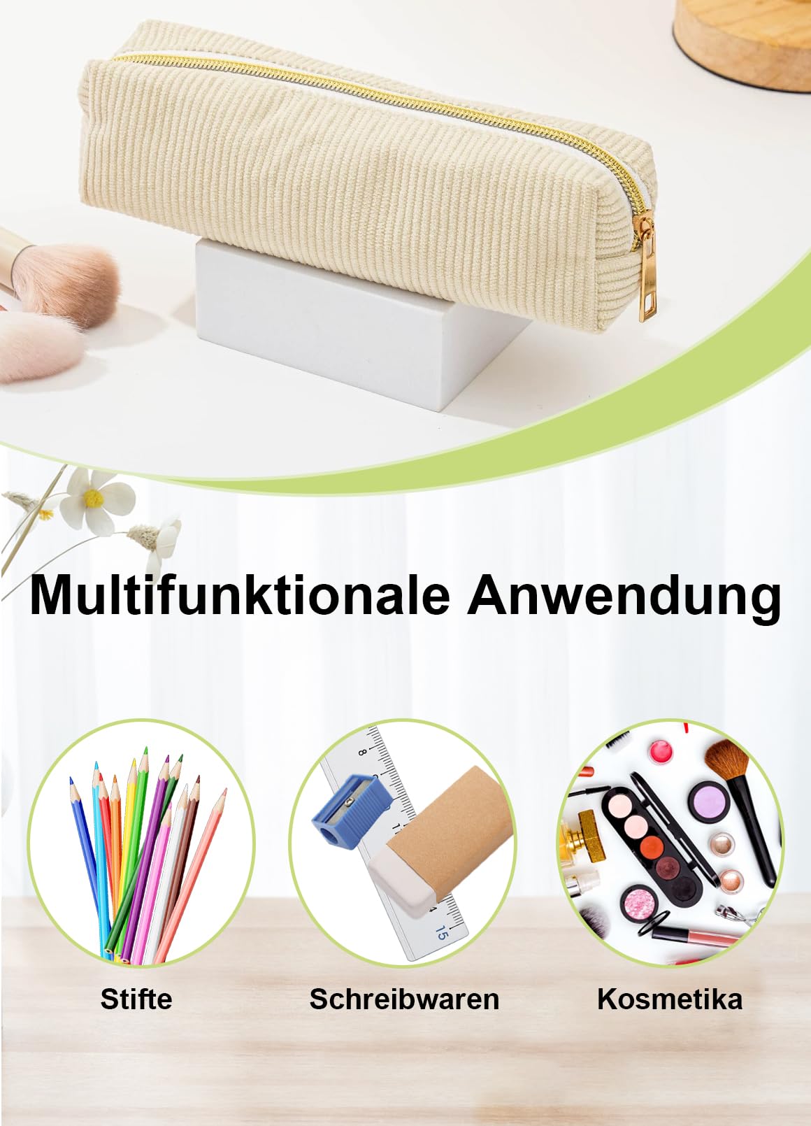 - Schlichtes Design: Dieses beigefarbene Federmäppchen aus hellem Samt wurde sorgfältig entworfen und sieht exquisit aus, um Ihre Bedürfnisse voll und ganz zu erfüllen. Das stilvolle und praktische Design macht es zum idealen Begleiter für Ihre Arbeit oder Ihr Studium.