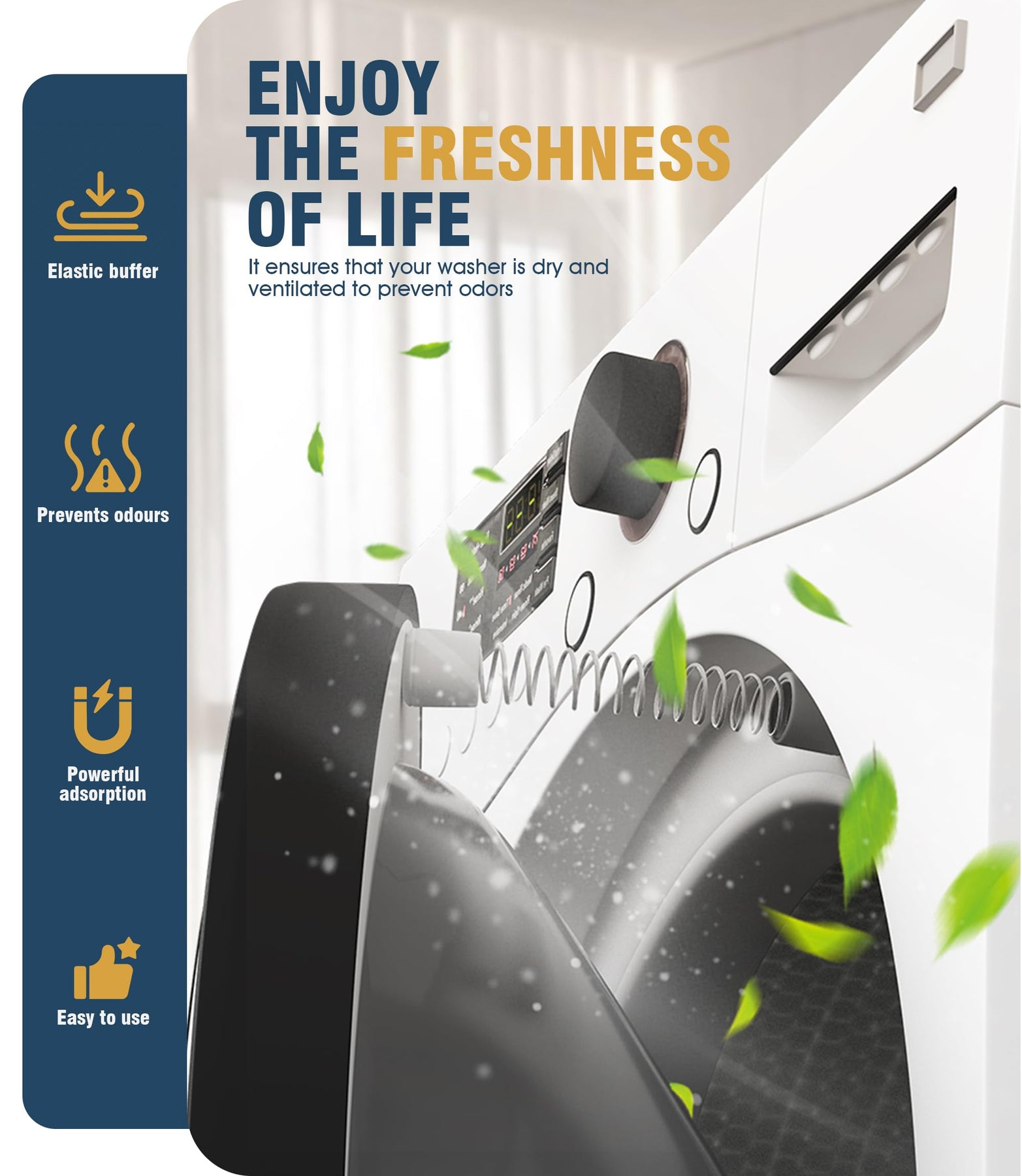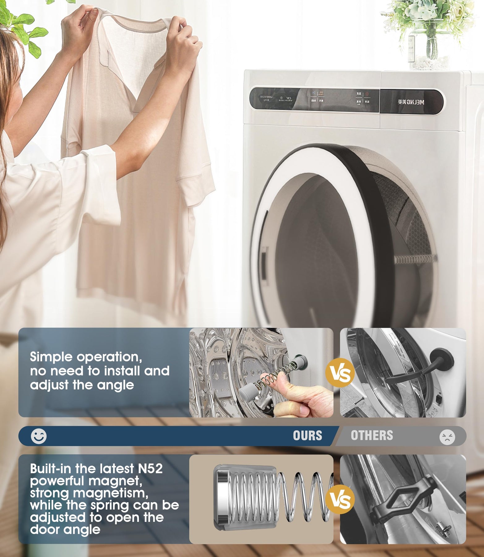 • 【Halten Sie Ihre Waschmaschine sauber und geruchsfrei】 Wenn die Waschmaschinentür lange Zeit geschlossen ist, bleibt die Türdichtung feucht, Bakterien wachsen, schimmeln und stinken. Die magnetische Waschmaschinentürstütze kann Ihnen helfen, dieses Problem zu lösen