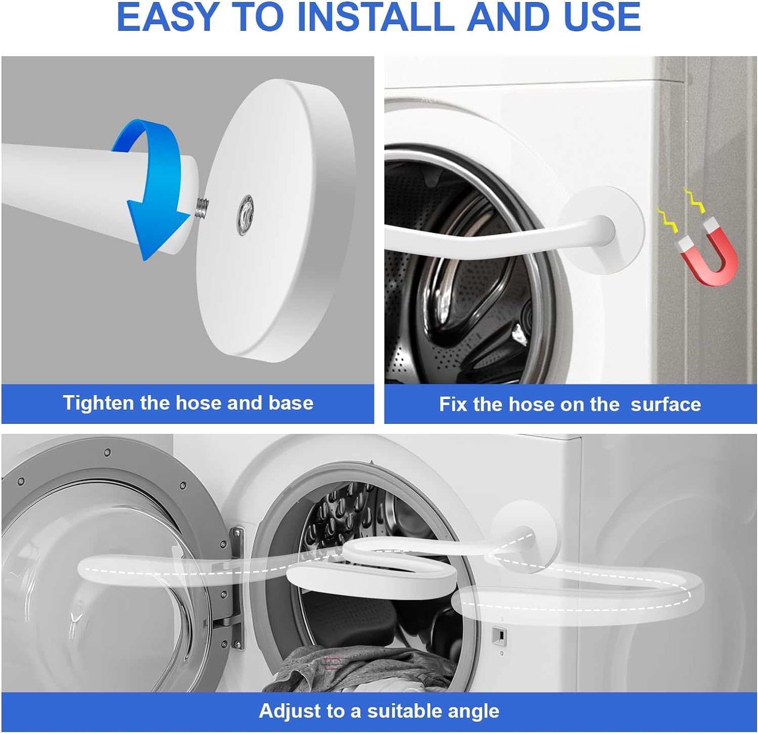 - 【Einfach zu bedienen】1. Kleben Sie den Magnetfuß auf den inneren Türrahmen der Waschmaschine; 2. Formen Sie den Schlauch, um ihn an der Waschmaschinentür zu befestigen; 3. Entfernen Sie nach Gebrauch der Waschmaschine die Stütze der Waschmaschinentür. Wenn die Waschmaschine aus Kunststoff und Edelstahl besteht, bringen Sie bitte zuerst die Metallhalterung an und wiederholen Sie dann die vorherigen Schritte.