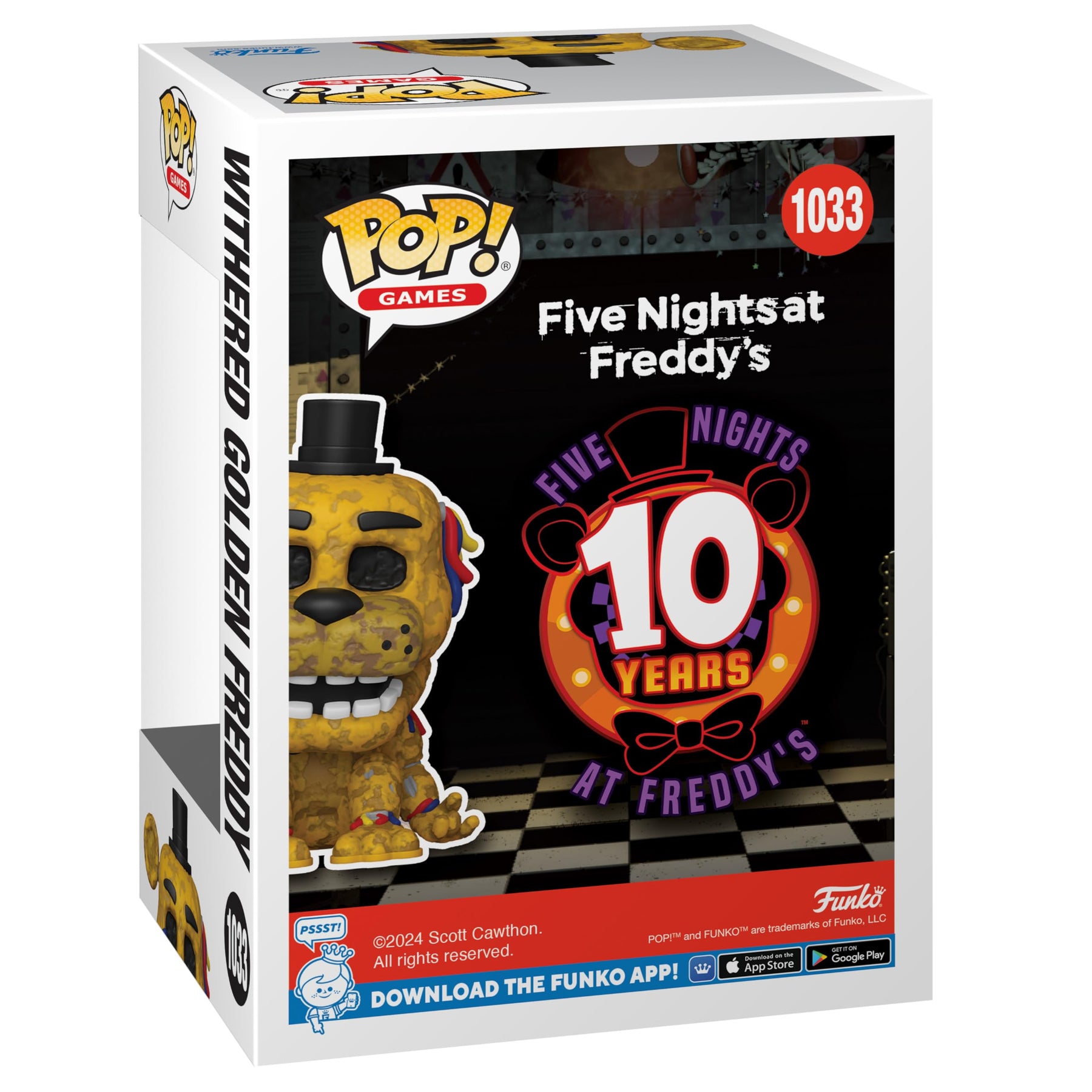 Verpassen Sie Ihrer Sammlung mit Pop! Withered Golden Freddy einen Sprung! Feiern Sie 10 Jahre Five Nights at Freddy's™ und vervollständigen Sie Ihre Sammlung, indem Sie sich diesem exklusiven Pop! Withered Golden Freddy nähern, bevor er sich entfernt! Die Vinylfigur ist ca. 3,9 Zoll groß. Weitere Funko-Produkte finden Sie bei Hot Topic.