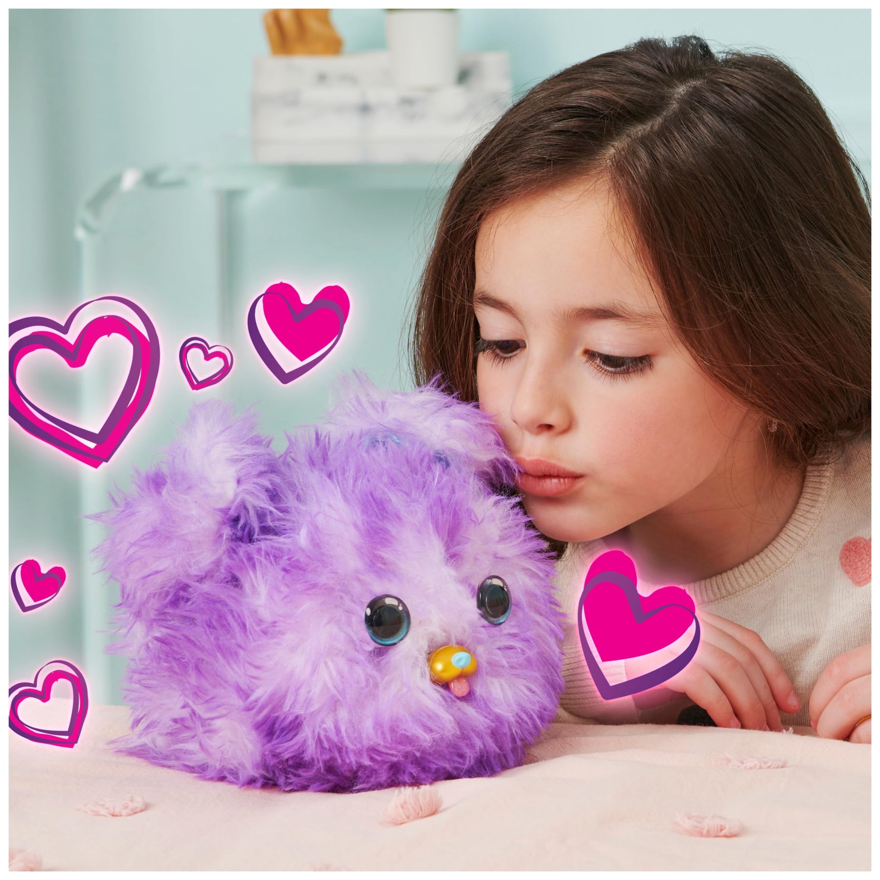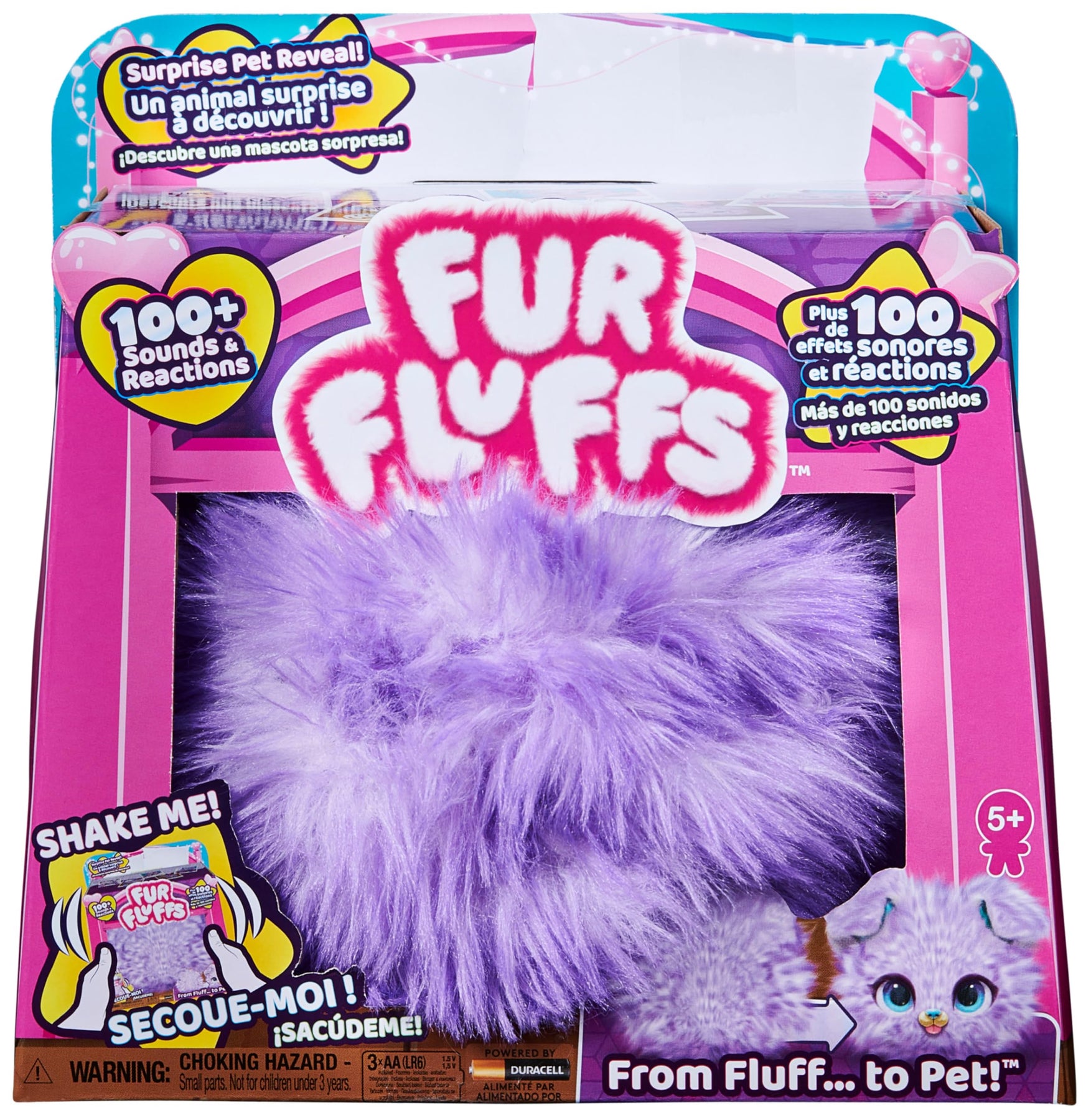 Vom Flauschball zum interaktiven Tierchen und wieder zurück: Diese magische Verwandlung erleben Kinder ab 5 Jahren immer wieder gerne. Vor allem, weil sie ihren Teil dazu beitragen können. Die Magie liegt quasi in ihren Händen. Durch spielen mit dem Fellball - streicheln, hochwerfen, rollen - wird das Flauschi allmählich mit Geräuschen lebendig, bis Augen, Schnauze und Ohren sichtbar werden. Das niedliche Hündchen bietet vielfältige Spielmöglichkeiten. Es macht schmatzende Geräusche, wenn man so tut, als würde man es füttern, spielt Musik, singt und tanzt dazu und manchmal bekommt es sogar einen Schluckauf. Doch wenn man sein FurFluffs erschreckt, rollt es sich blitzschnell wieder zusammen und es braucht etwas Liebe und Geduld, bis es erneut Vertrauen fasst und sich wieder zeigt. Mit mehr als 100 Geräuschen und Reaktionen ist dem FurFluffs jede Menge Spaß und Unterhaltung angesagt. FurFluffs gibt es auch als rosa Kätzchen (separat erhältlich).