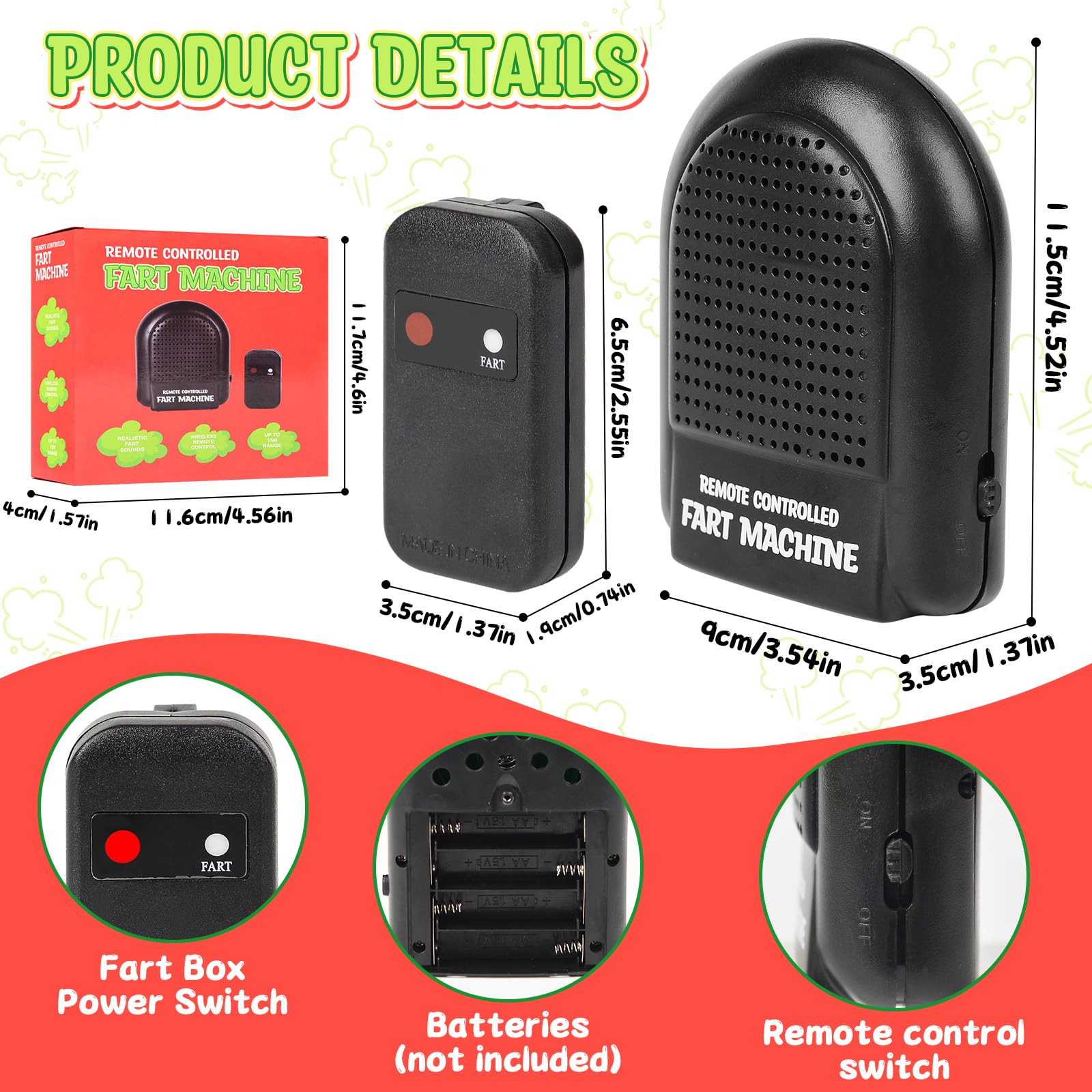 - Lustige Furzmaschine: Mit dieser ferngesteuerten Furzmaschine können Sie endloses Gelächter mit realistischen Furzgeräuschen aus der Ferne auslösen. Lustige Fernbedienung Furz Box simulieren Furz Sound, kann eine wunderbare und nette Partei Streich Spielzeug sein.