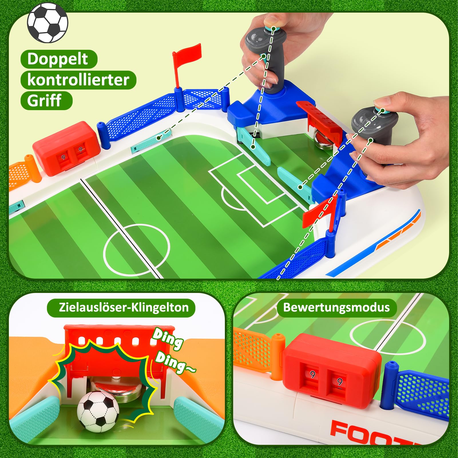 - 【Bildung & Interaktiver Spaß】Tauche ein in das Bildungs-Fußballtisch-Interaktionsspiel, das nicht nur einen echten Fußballplatz simuliert, sondern auch die Hand-Augen-Koordination, Reaktionsgeschwindigkeit und strategisches Denken verbessert. Entwickelt für zwei Spieler, fördert es soziale Fähigkeiten und harmonische Interaktionen und ist somit ein perfektes Spiel für Familientreffen.