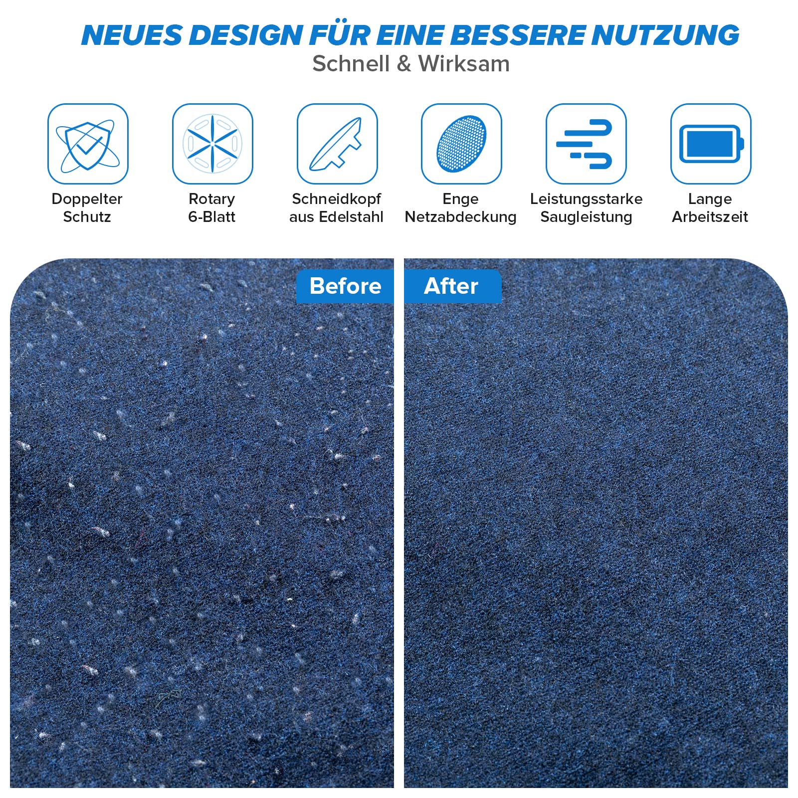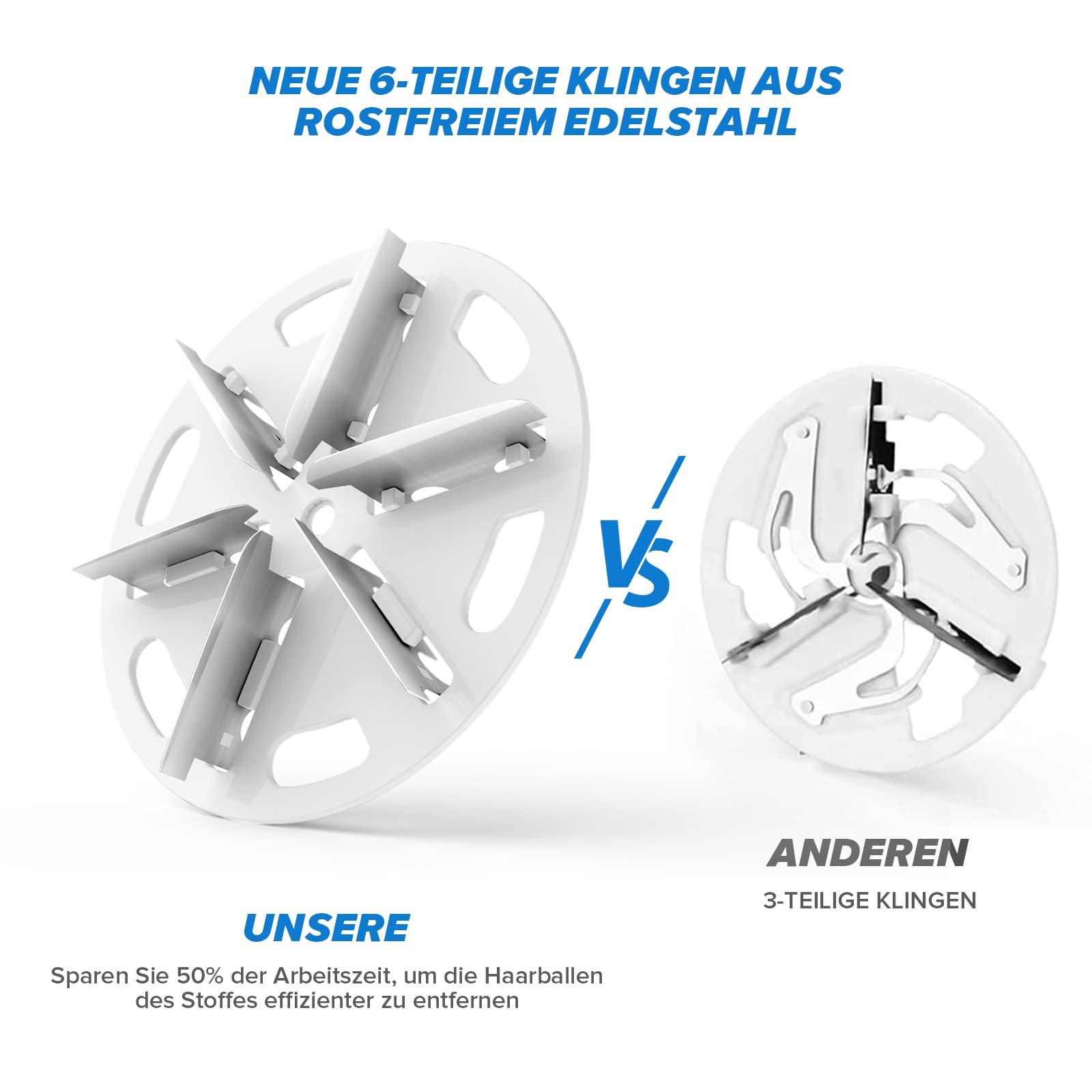 - ✅ 【Schnell und effizient】Verbesserte 6 klingen,Im Vergleich zur herkömmlichen 3-Klinge ist sie 30% länger und 0,5% dicker, was ihre Rasiereffizienz um 50% erhöht. Der Fusselrasierer kann die Haarballen auf Kleidung schneller und sauberer reinigen und ist für alle Arten geeignet Kleidung und Stoffe, einschließlich alter Socken, Pullover, Mäntel, Sofas, Decken, Laken.