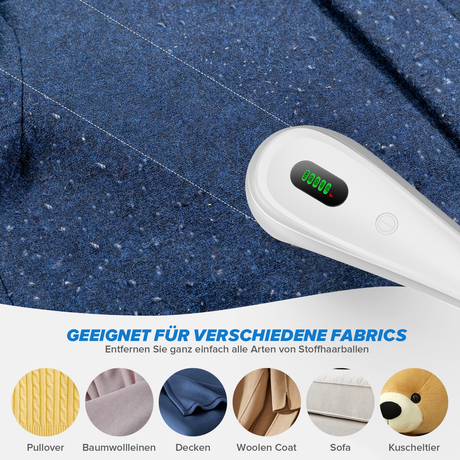 - ✅ 【Neue Einzigartig Eigenschaften】Intelligent LDE-Bildschirm-Power-Display, kann den laufenden Status, 0-100% Power-Anzeige eindeutig verstehen. und Bionisches Wabendesign, Große Wabennetzabdeckung um Flusenbälle effizienter zu fangen.Dieser Fabric Shaver eignet sich für alle Arten von Kleidungsstücken und Stoffen und entfernt schnell und mühelos Flaum, Flusen, Pillen und Bommeln.