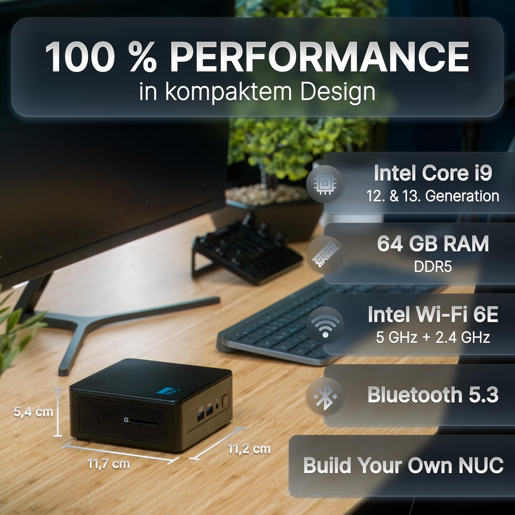 - EXTREME PERFORMANCE IM KOMPAKTEN FORMAT – Der FutureNUC Pro ist mit dem Intel Core i9-13900HK der 13. Generation ausgestattet. Mit 14 Kernen (6P + 8E), 20 Threads, 24 MB Cache und bis zu 5,4 GHz Takt liefert er Desktop-Performance im Mini-Format. Die integrierte Intel Iris Xe Grafik sorgt für lebendige Bilder in 4K – ideal für anspruchsvolle Business- und Multimedia-Anwendungen.