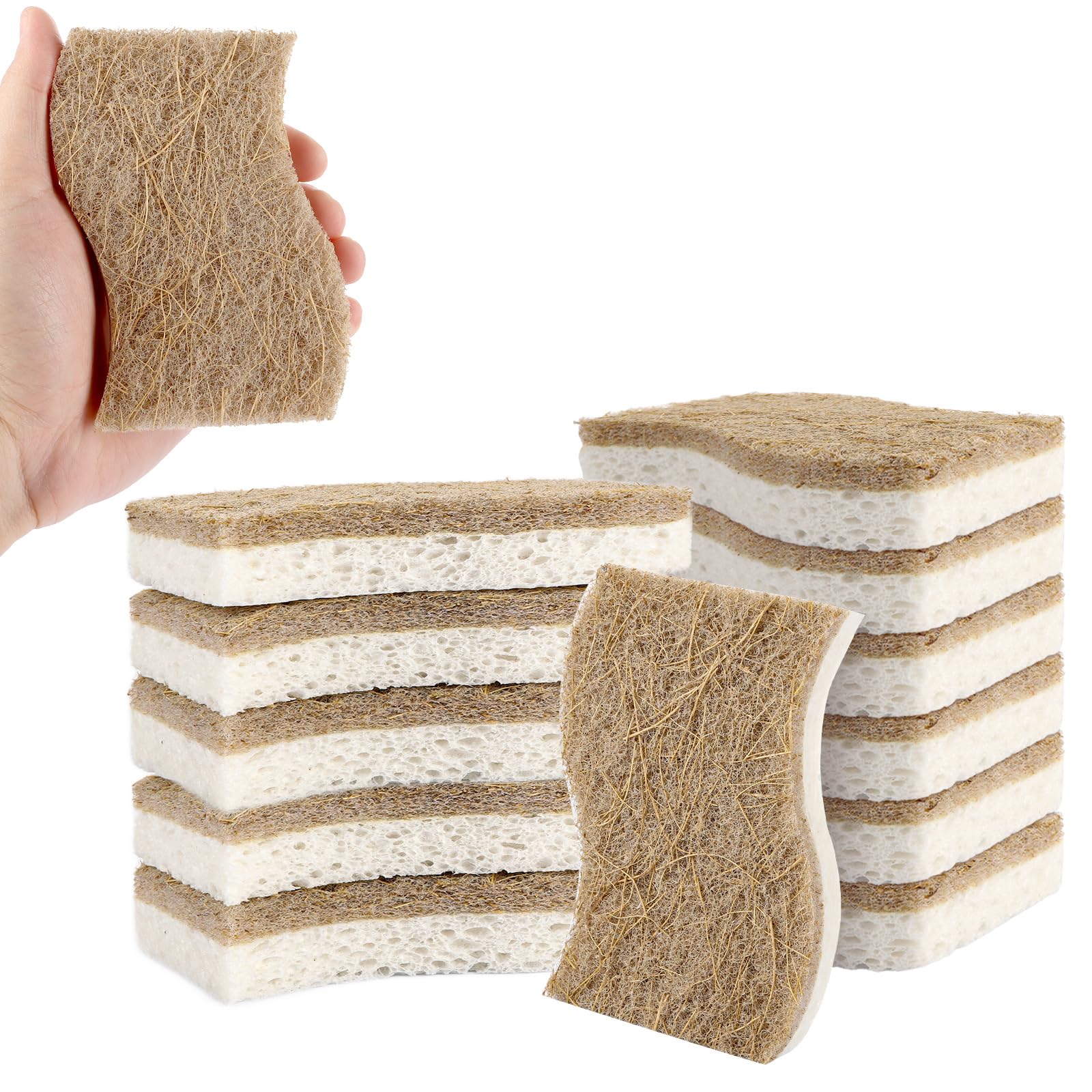 FWEEK 12 Stück Spülschwamm Nachhaltig, Natürlicher Wiederverwendbare Küchenschwamm, Biologisch Abbaubarer Küchenschwamm, Öko Schwamm Küche für Geschirr, Töpfen, Schüssel, Teller