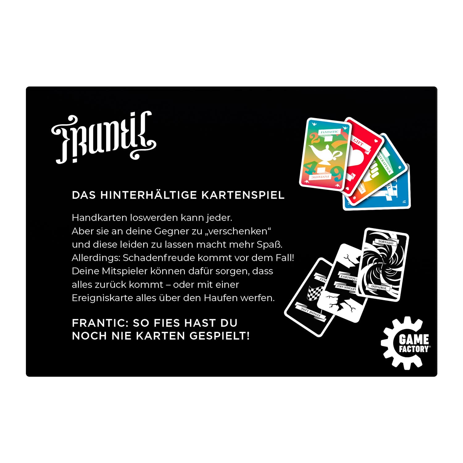 - Frantic, so fies hast du noch nie Karten gespielt! Handkarten loswerden kann jeder - aber sie an deine Gegner zu verschenken und diese leiden zu lassen, macht mehr Spaß!