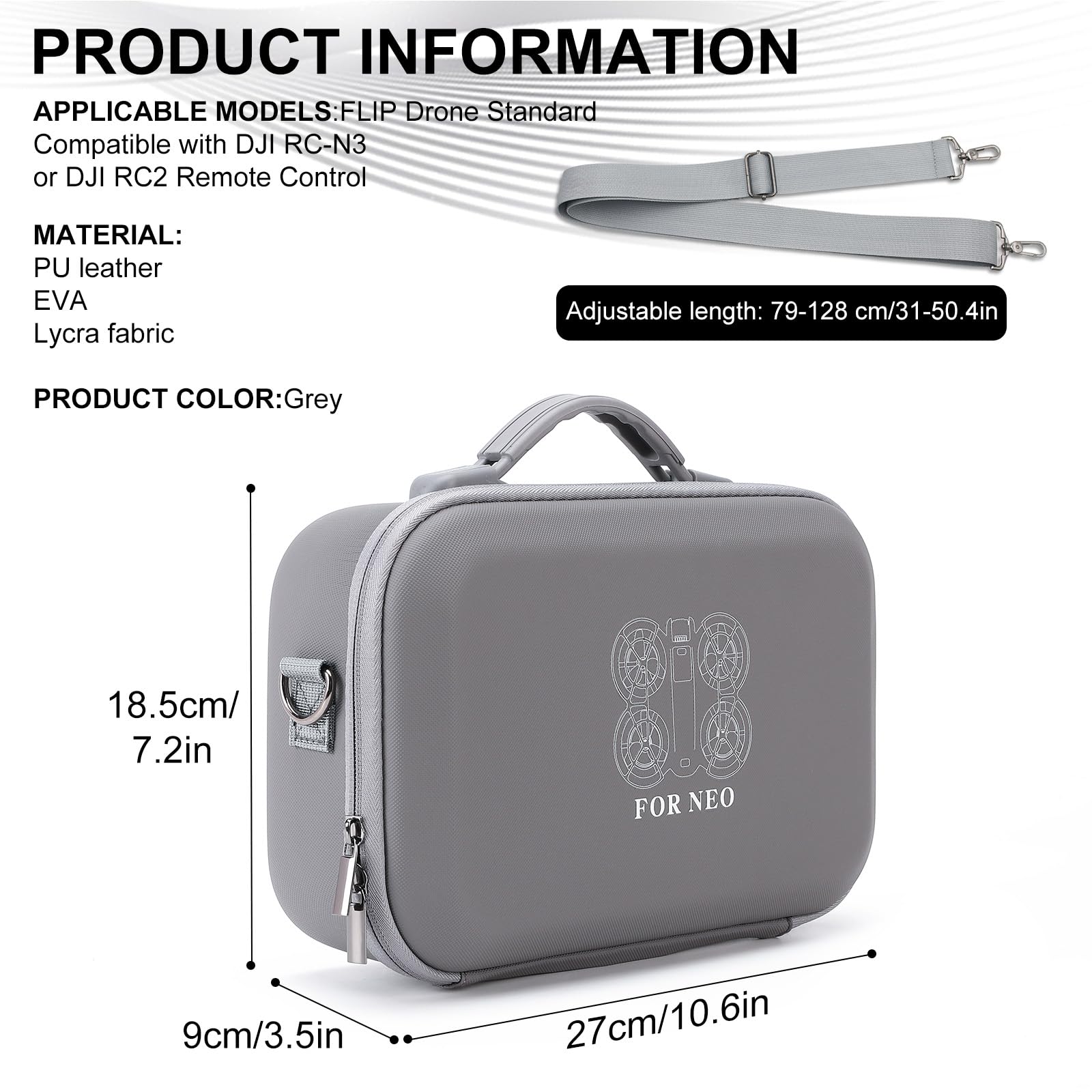 • Lieferumfang & Hinweis – 1× Tragetasche für DJI Neo (inkl. Schultergurt). (Hinweis: Nur Koffer, Drohne und anderes Zubehör sind NICHT enthalten.)
