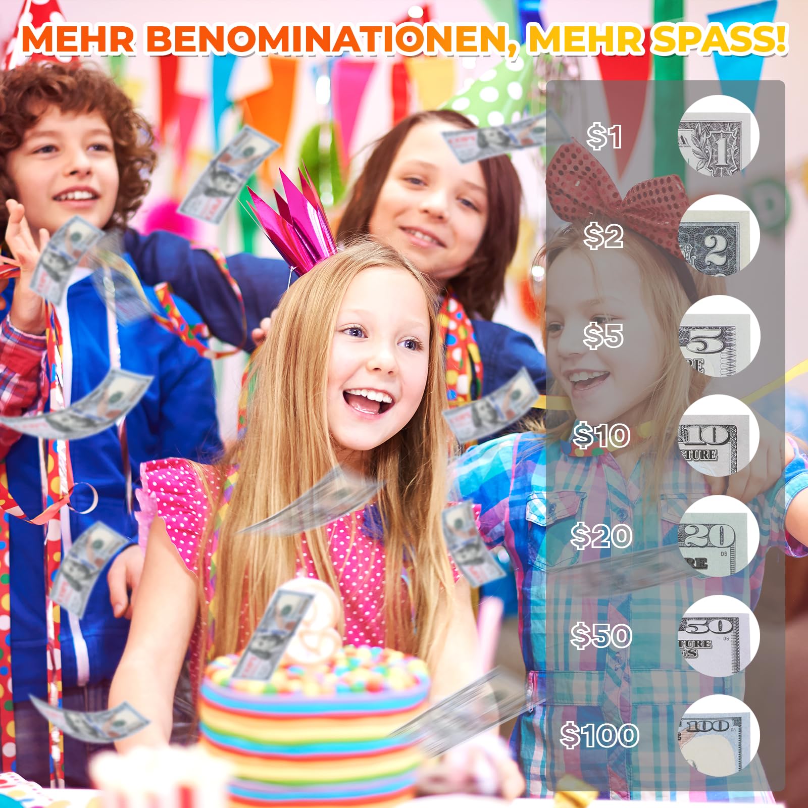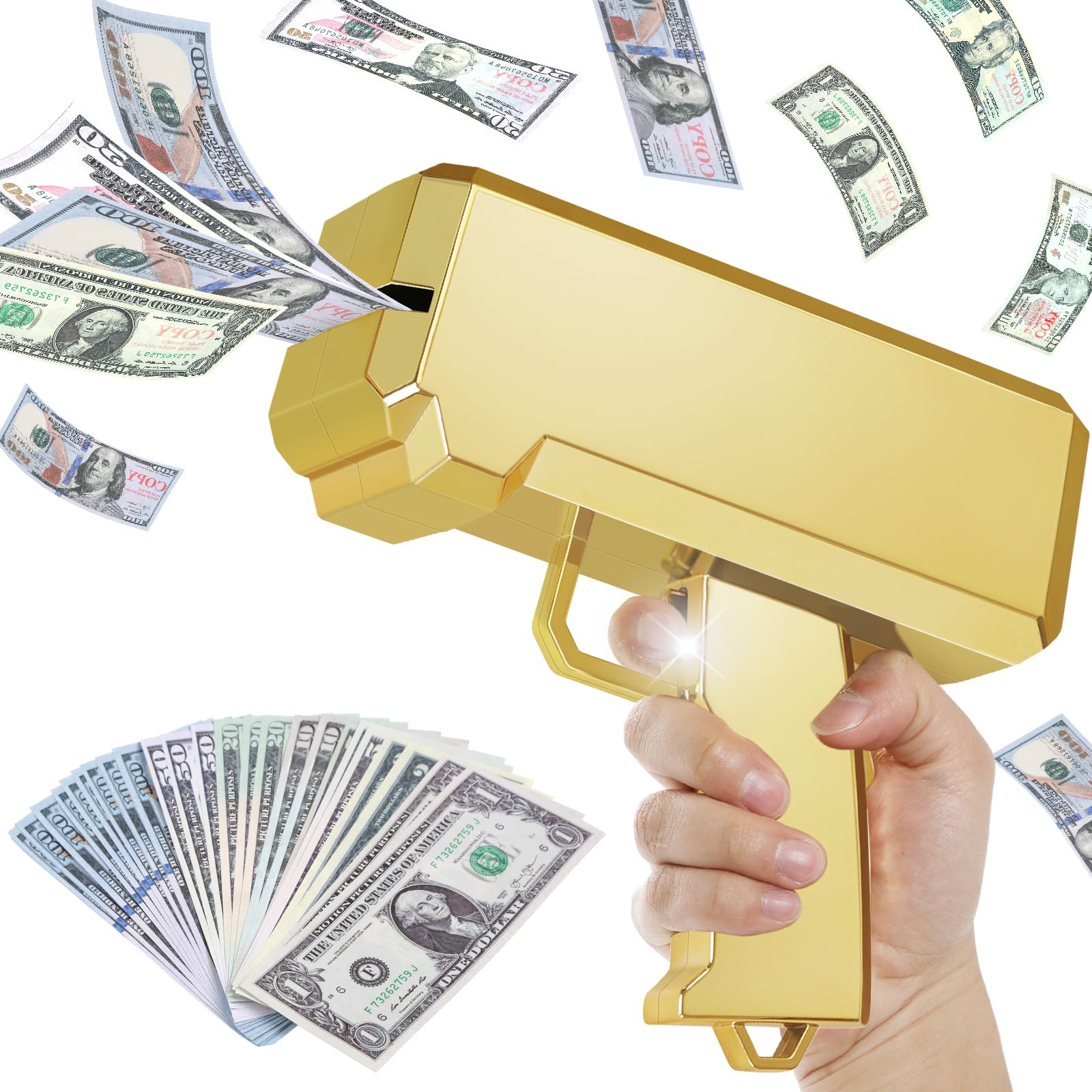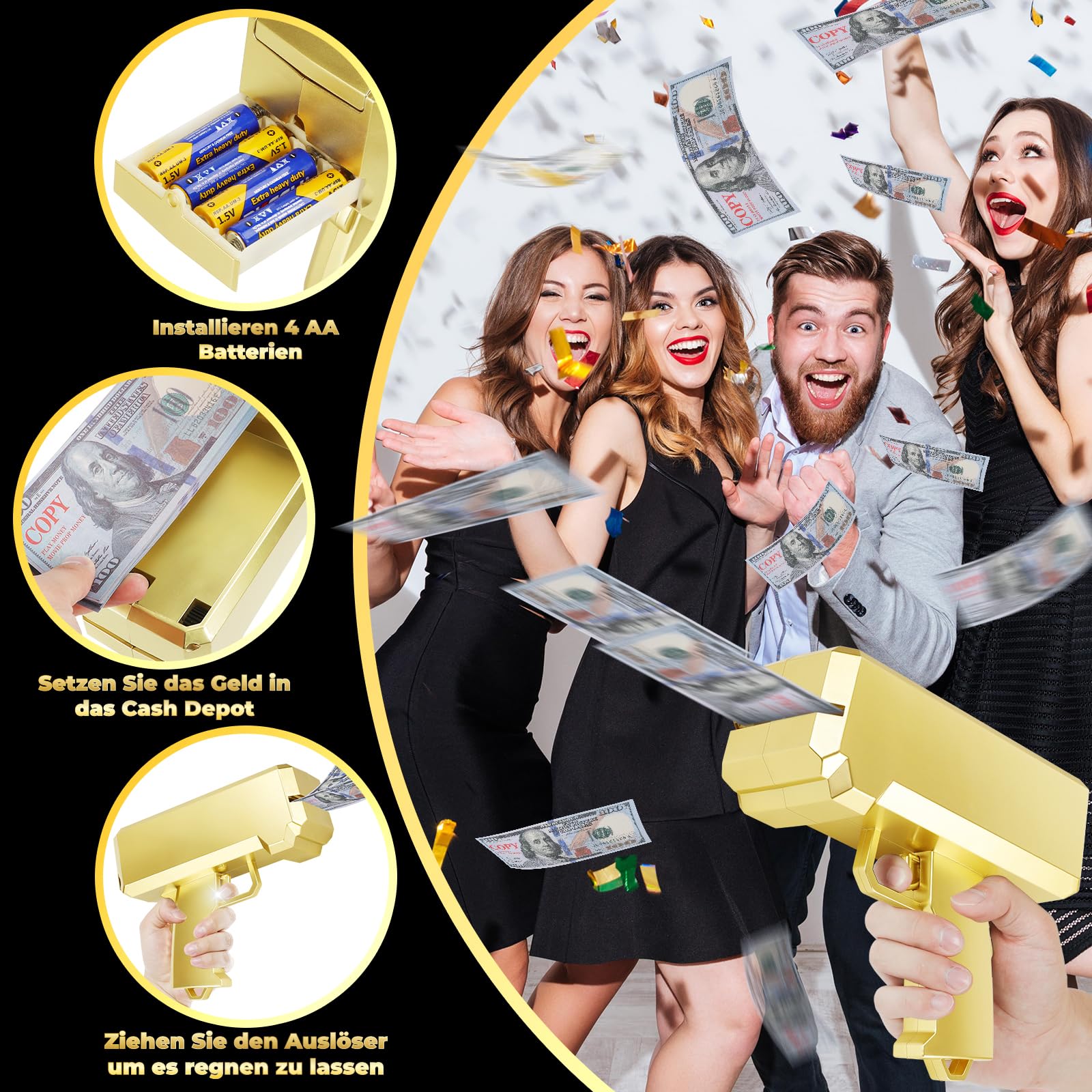 - PEPPEN SIE IHRE PARTY AUF: Drücken Sie den Abzug der Geldkanone und das Papiergeld wird im ganzen Haus verstreut. Dieser große Geldregen kann Ihre Freunde und Familie sicher beeindrucken!