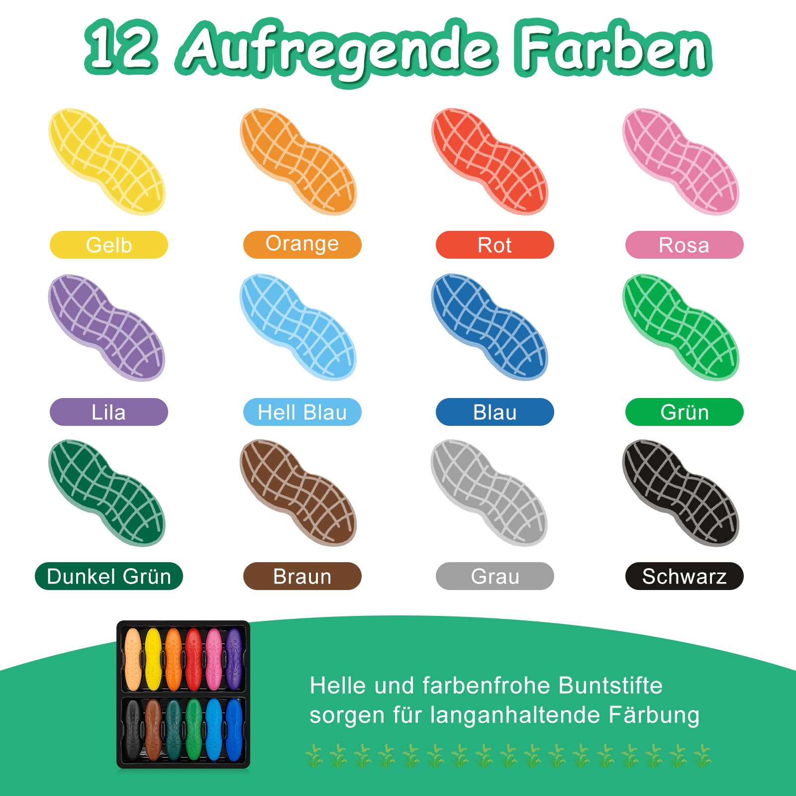 - 👶 Einfach zu Greifen: Unsere Malstifte Kleinkinder ab 1 Jahr sind mit einem süßen Erdnuss-Design ausgestattet, das von kleinen Händen mühelos gegriffen werden kann. Damit wird das Zeichnen und Malen zu einem mühelosen und unterhaltsamen Erlebnis für die Kleinen. Die Kinder Stifte ergonomische Form fördert die feinmotorischen Fähigkeiten der Kinder.