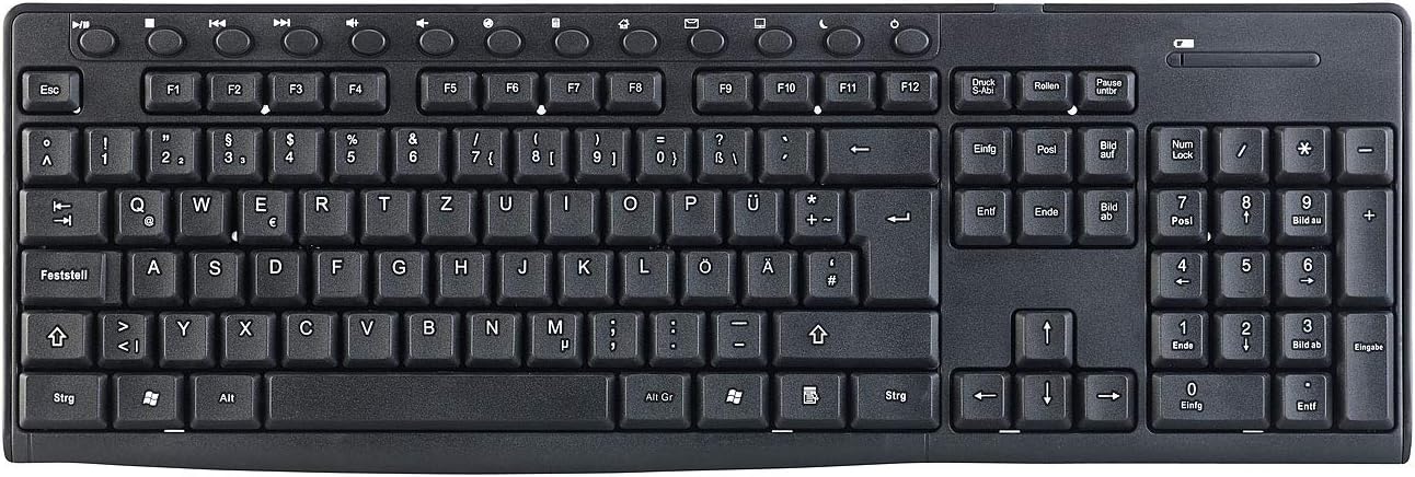 - 2,4-GHz-Funksystem mit hoher Reichweite: bis zu 10 m • Weicher und leiser Tastenanschlag • Ergonomische Form: liegt angenehm in der Hand, mit gummierter Oberfläche • Plug & Play: sofort loslegen dank vorinstallierter Treiber • Stromversorgung Tastatur: 1 Batterie Typ AAA / Micro (bitte dazu bestellen)