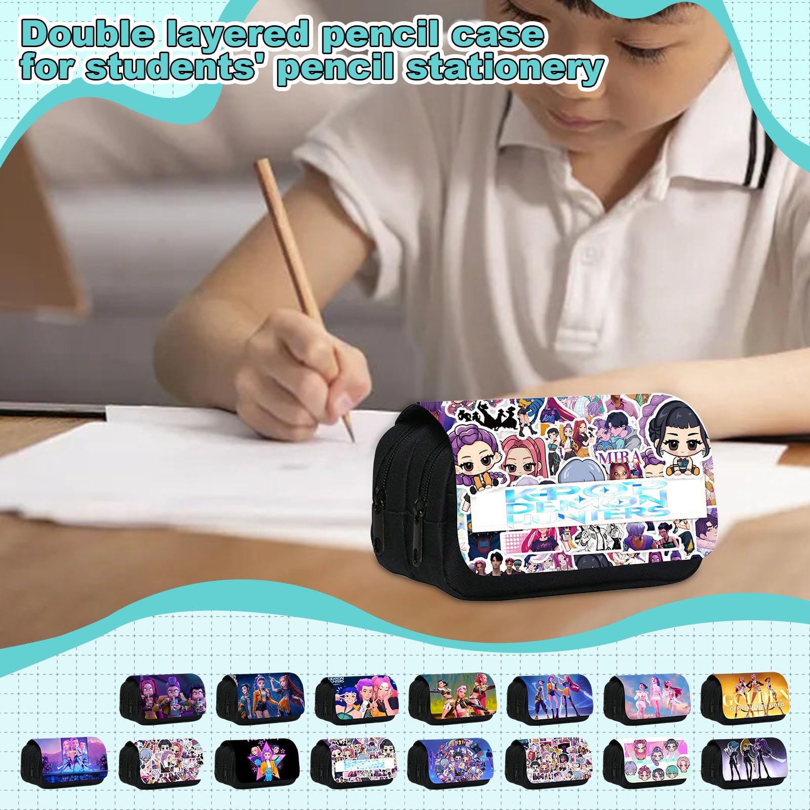 Generisch 2025 Demon Hunters Stiftetasche, HUNTR/X Mäppchen mit Grossem Fassungsvermögen, Federmäppchen mit Reißverschluss, Schlampermäppchen für Kinder Studenten Schule Büro(M)