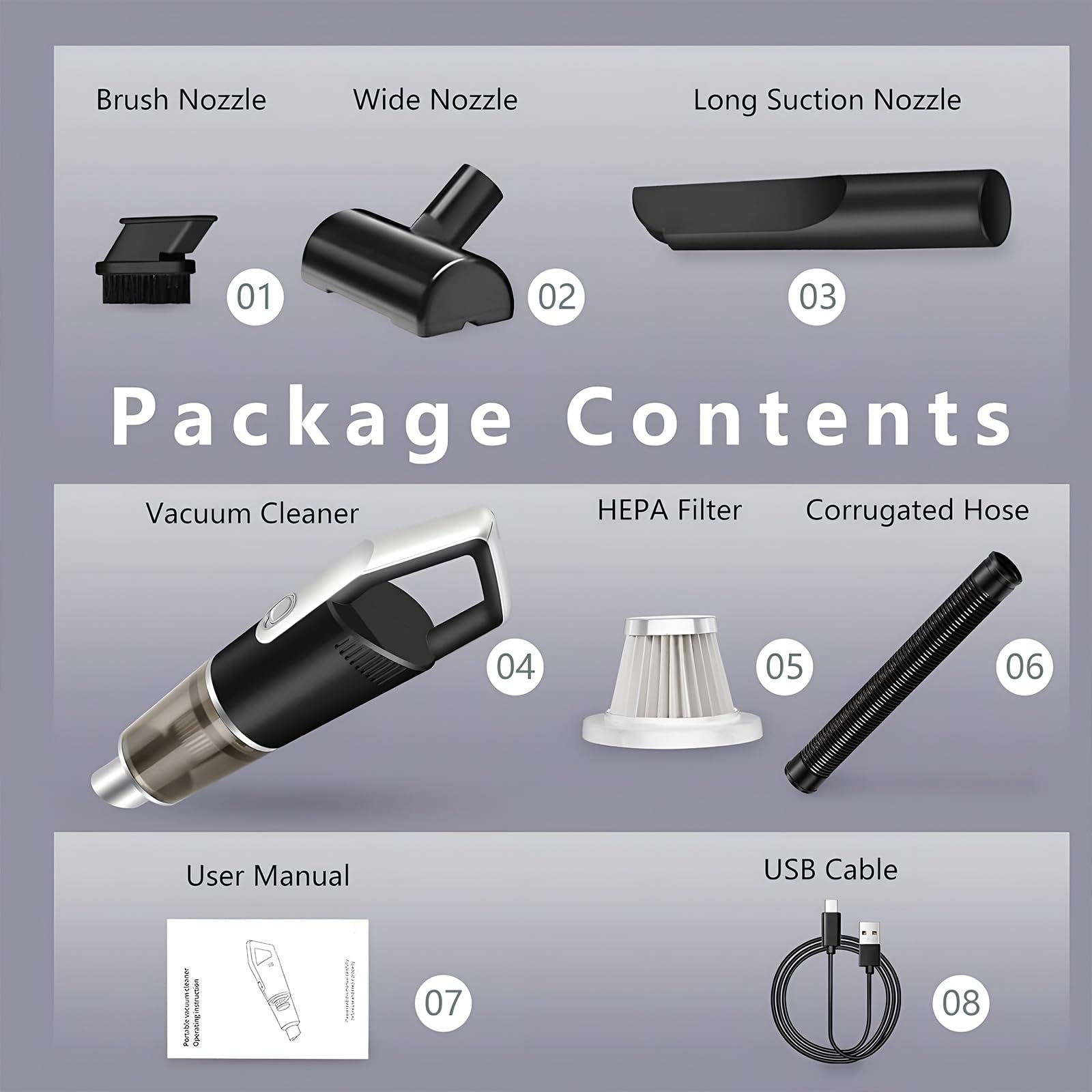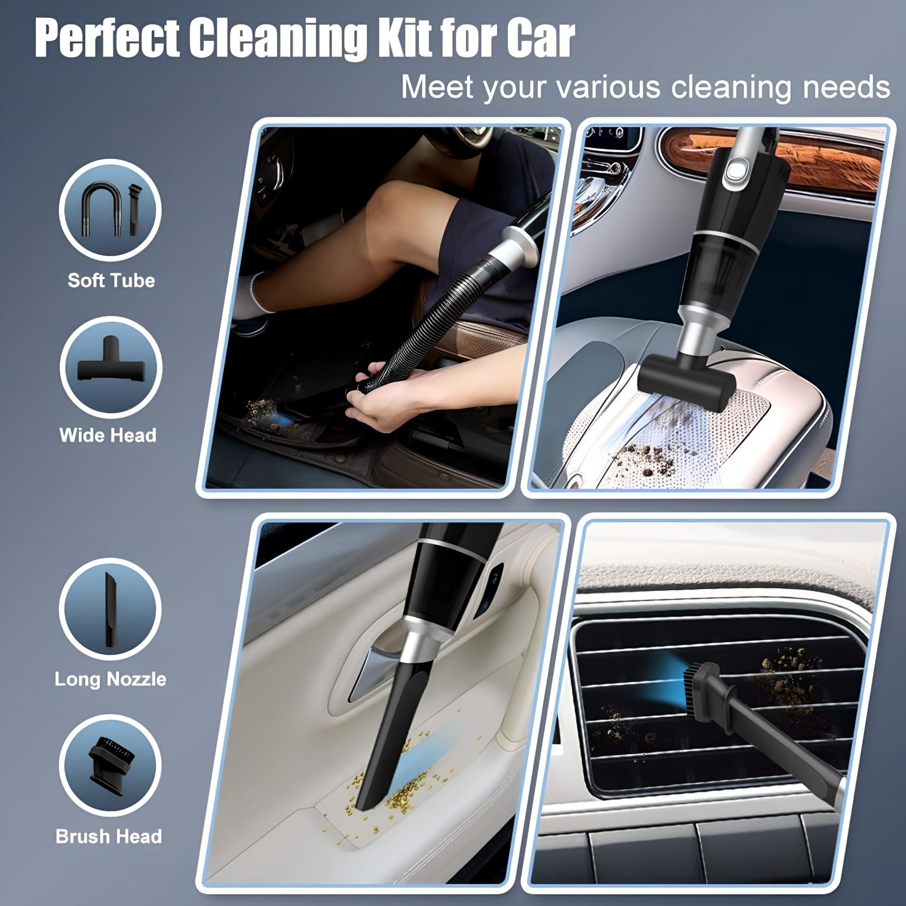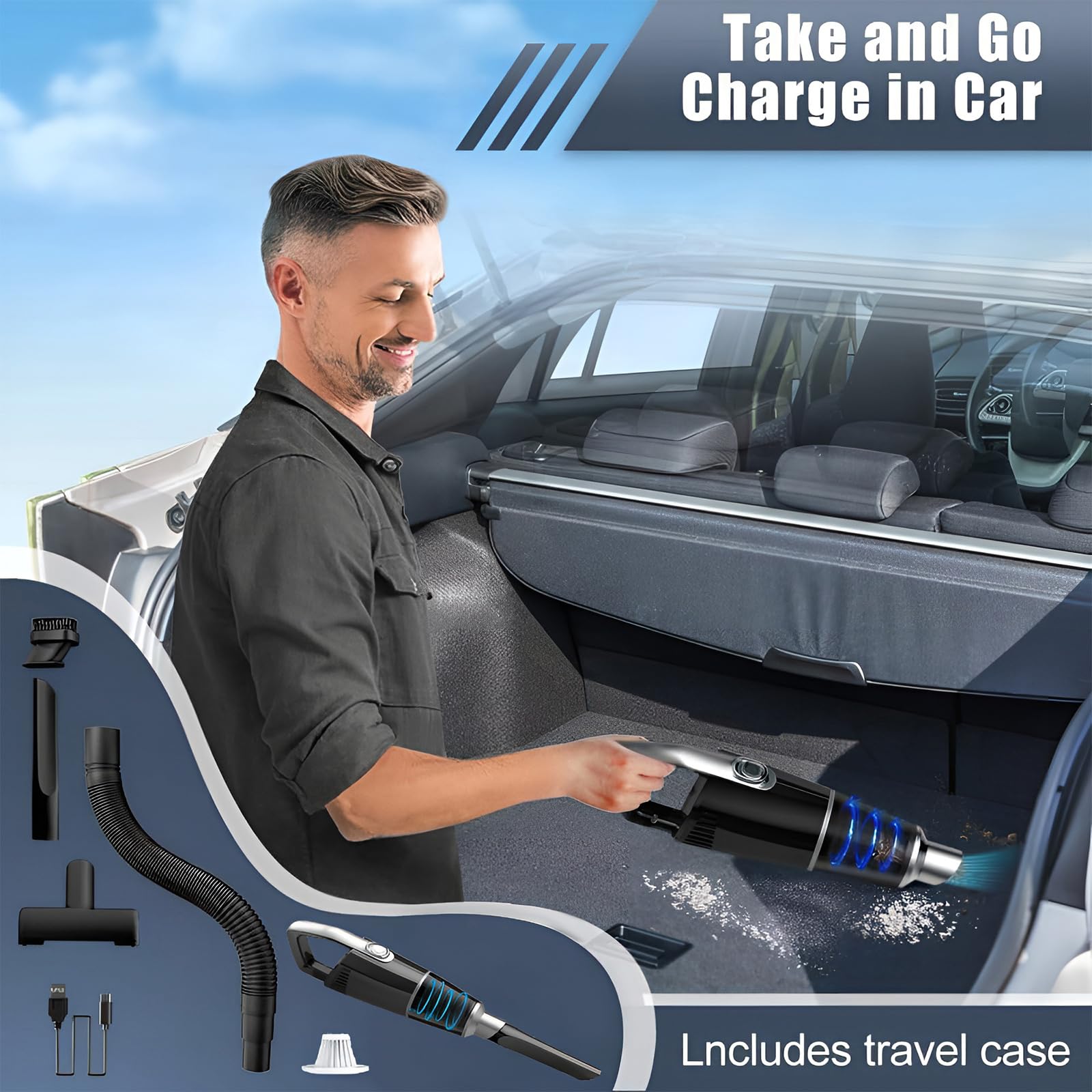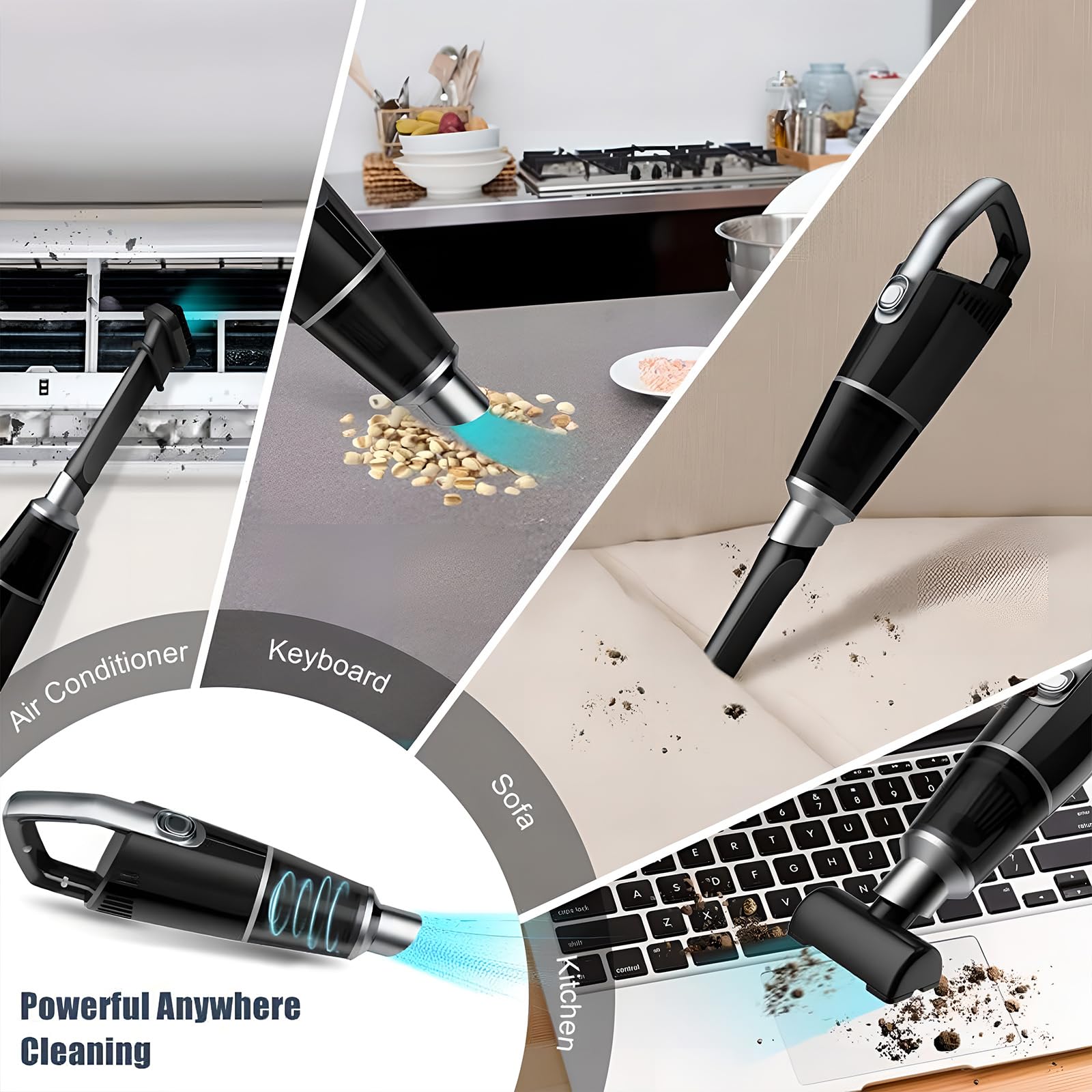 - 【Lange Akkulaufzeit】: Der Handstaubsauger ist mit einer hochwertigen 4000-mAh-Lithiumbatterie ausgestattet, die eine Ladezeit von etwa 4 Stunden und eine Betriebszeit von 17 bis 18 Minuten ermöglicht. Außerdem wird der Staubsauger mit verschiedenen Reinigungszubehörteilen geliefert, wie z. B. einer Bürste, einer schmalen Düse, einem Schlauch und einer kleinen Bodenbürste. Diese Zubehörteile helfen den Benutzern, verschiedene Bereiche und Schmutzarten mühelos zu reinigen und die Reinigungsleistung erheblich zu steigern.