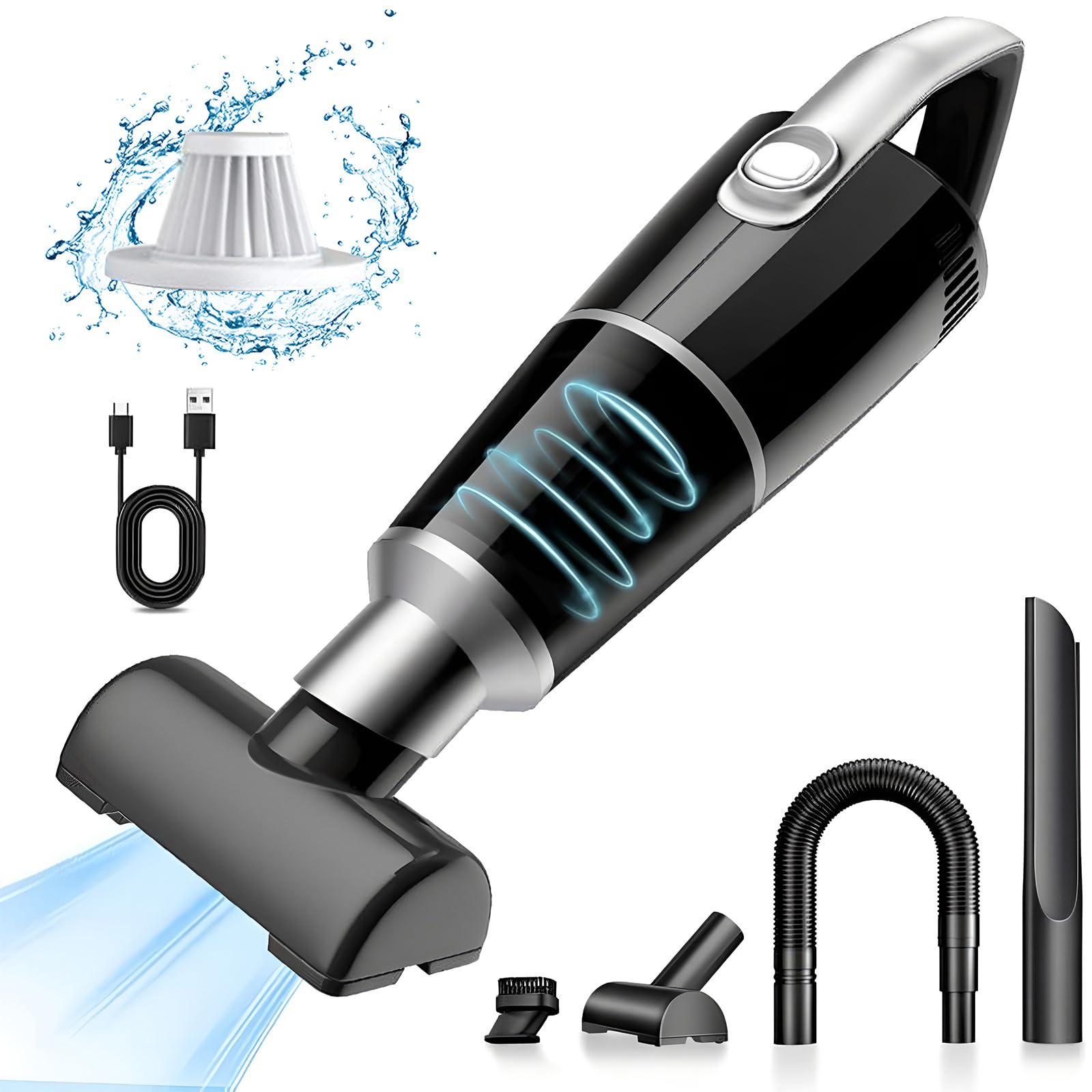 Generisch motomoyo Handstaubsauger, 8000Pa Handstaubsauger Akku, 7.4 V 120W Auto Staubsauger Stark, Mini Handsauger Kabellos & Beutellos per Auto, Haus