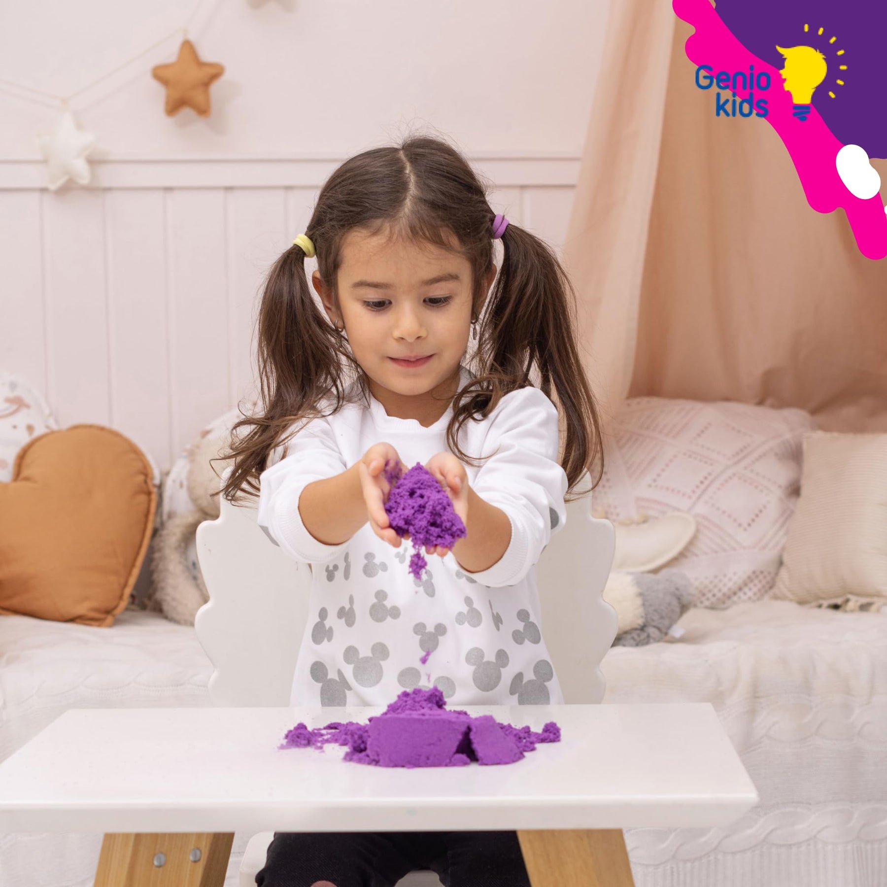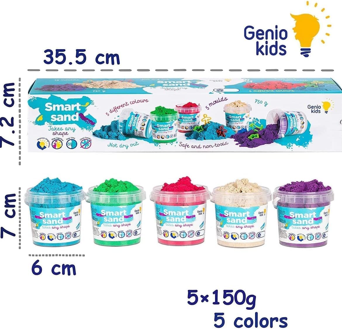 - Ungiftige, hypoallergene Zutaten. Zaubersand hergestellt aus natürlichem Sand. GenioKids Knete Sand verfügt über alle erforderlichen Qualitätszertifikate