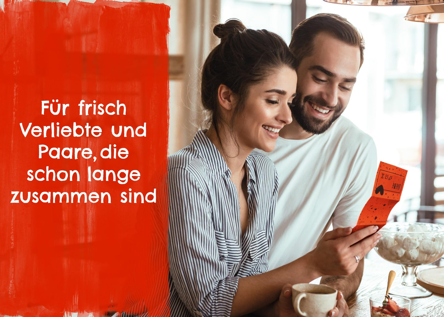 • FÜR LIEBESPAARE | Die Losbox für Paare von Herzmeister kommt bei frisch Verliebten ebenso gut an wie bei Pärchen, die lang in einer Beziehung sind.