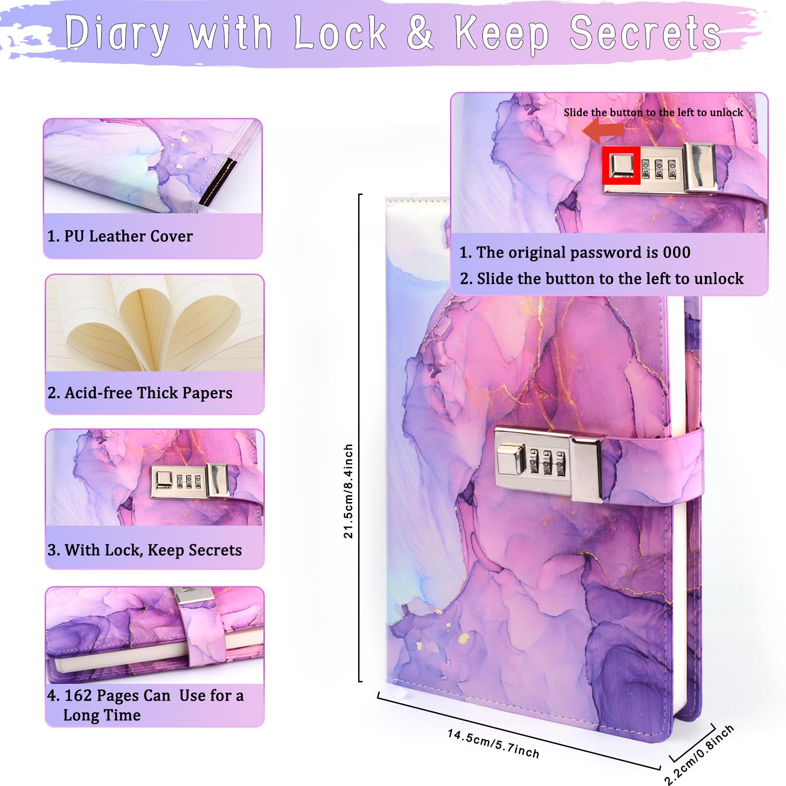 - 💜Tagebuch mit Schloss für Mädchen & Geheimnisse sicher aufbewahren: Dieses Tagebuch mit einem kreativen Passwortschloss aus ist ein sicherer Ort, an dem Mädchen ihre Gedanken, Gefühle und Träume frei ausdrücken können. Kinder und Teenager sind voller Kreativität und starker Vorstellungskraft. Das Tagebuch mit Schloss wird Ihr bester Freund und Ihr geheimer Garten sein. Und nur Sie, derjenige, der das Passwort kennt, können es lesen. Teenager mädchen geschenk 9 10 11 12 13 14 15 16 jahre.